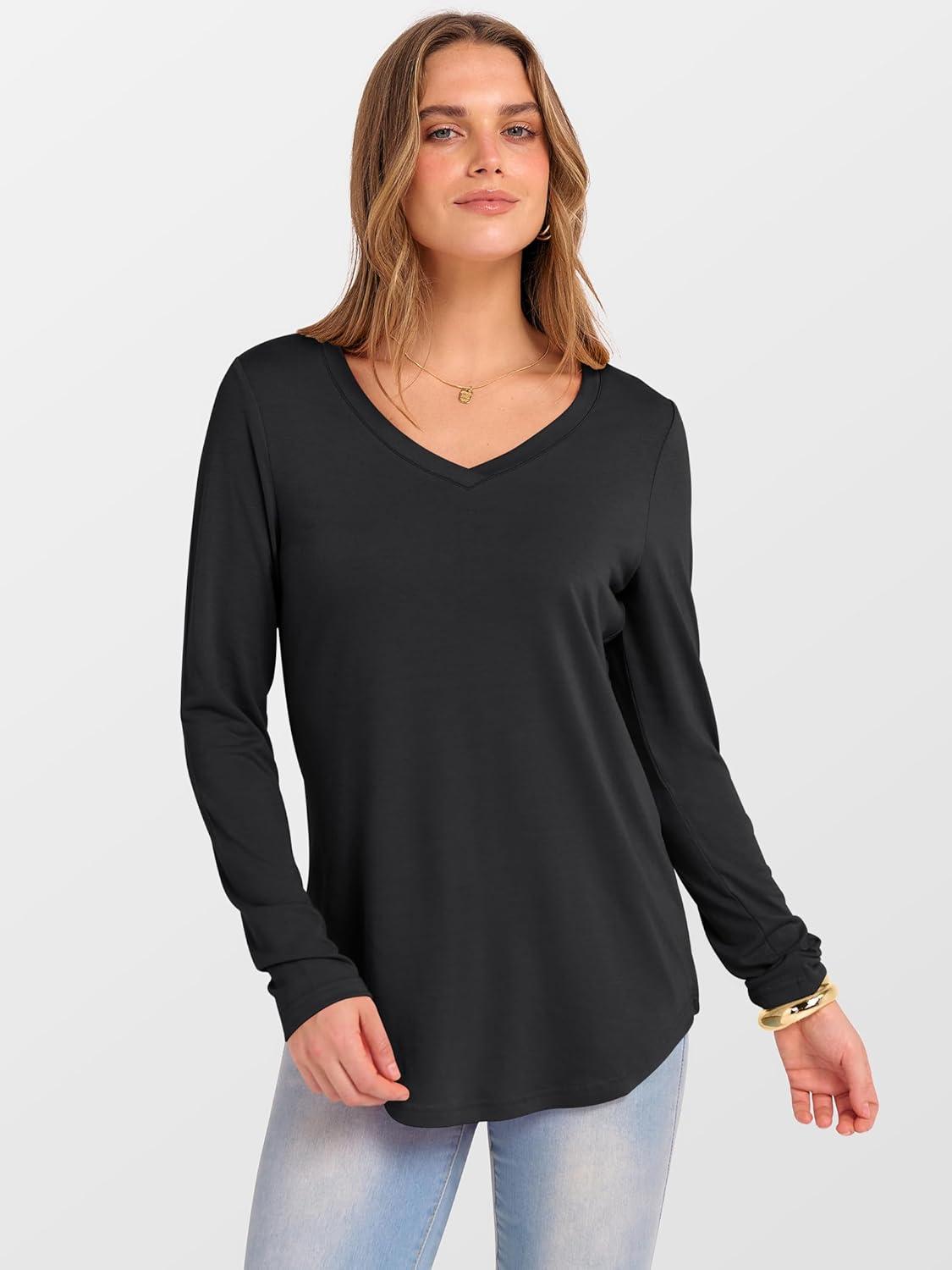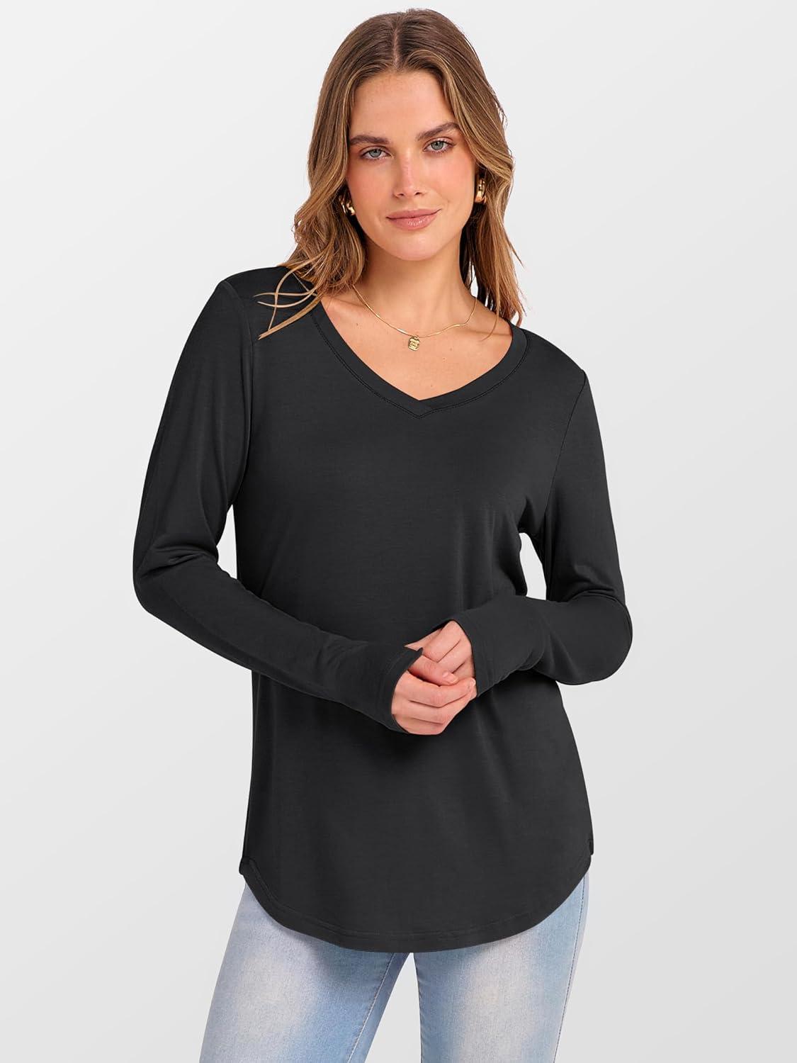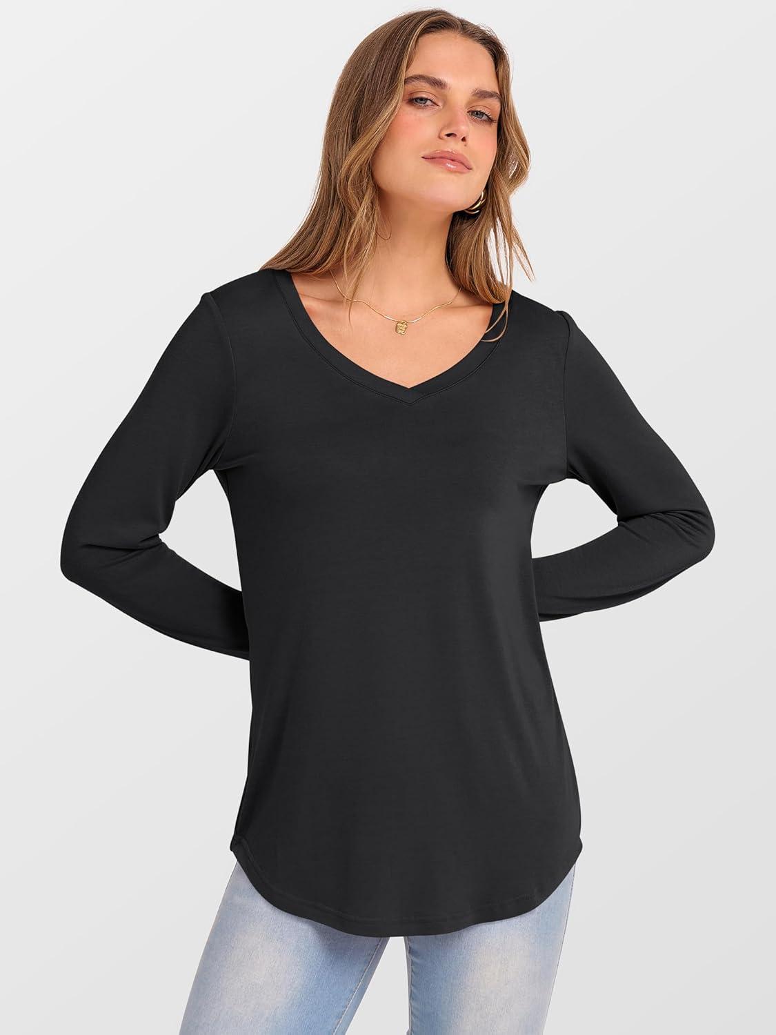 imageANRABESS Womens Long Sleeve Tunic Tops V Neck TShirts Casual Cute Basic Tee 2025 Fall Work Travel Loungewear OutfitsBlack