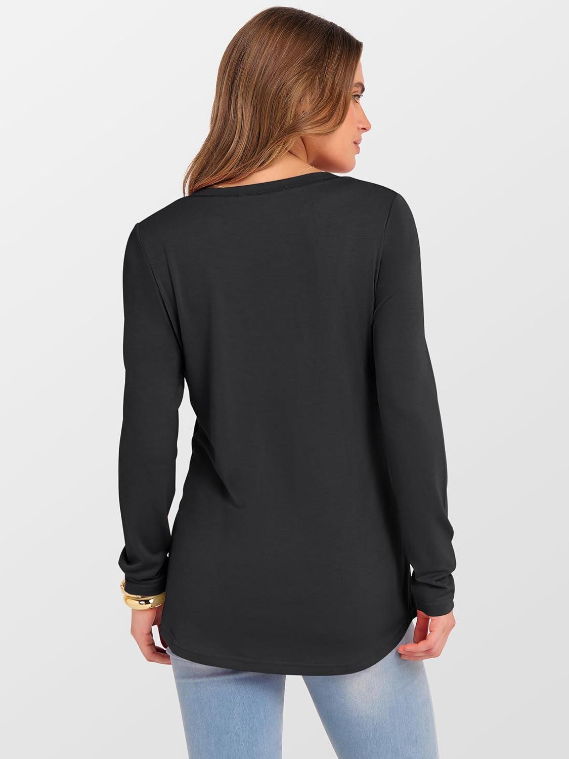 ANRABESS Womens Long Sleeve Tunic Tops V Neck T-Shirts Casual Cute Basic Tee 2025 Fall Work Travel Loungewear Outfits(Black)