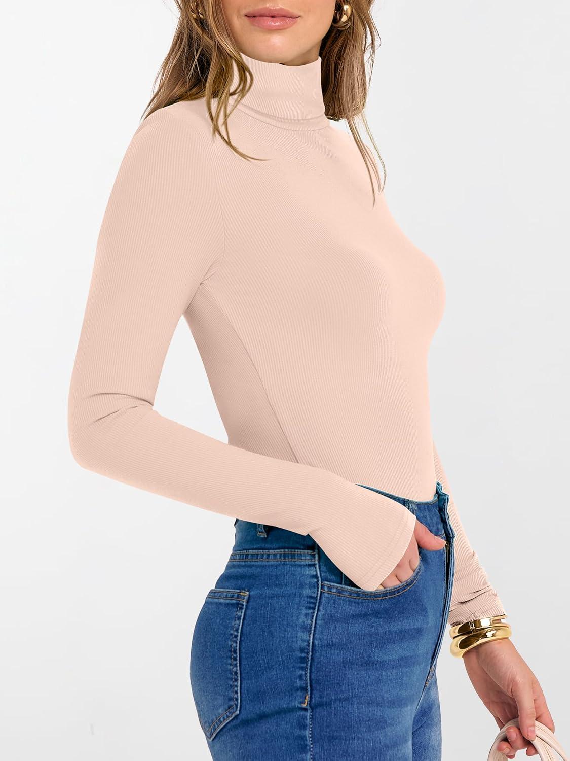 ANRABESS Women's Long Sleeve Turtleneck Shirts Casual Ribbed Basic Tee Slim Soft Thermal Tops 2025 Fall Going Out Clothes(Apricot)