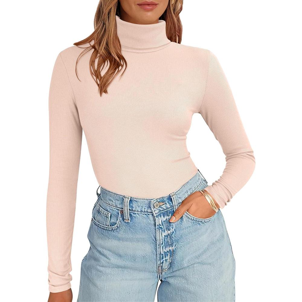 ANRABESS Women’s Long Sleeve Turtleneck Shirts Casual Ribbed Basic Tee Slim Soft Thermal Tops 2025 Fall Going Out Clothes(Apricot)