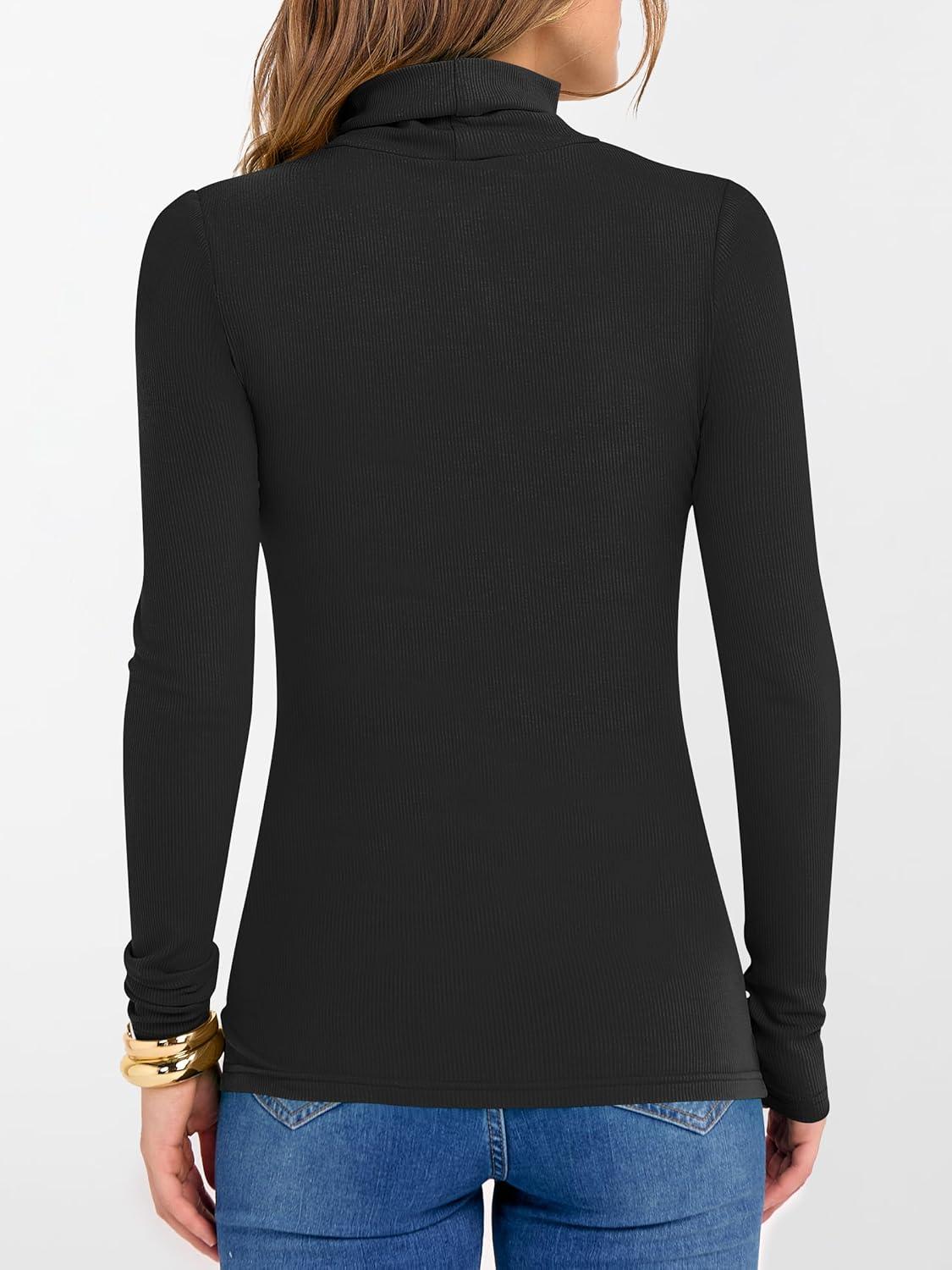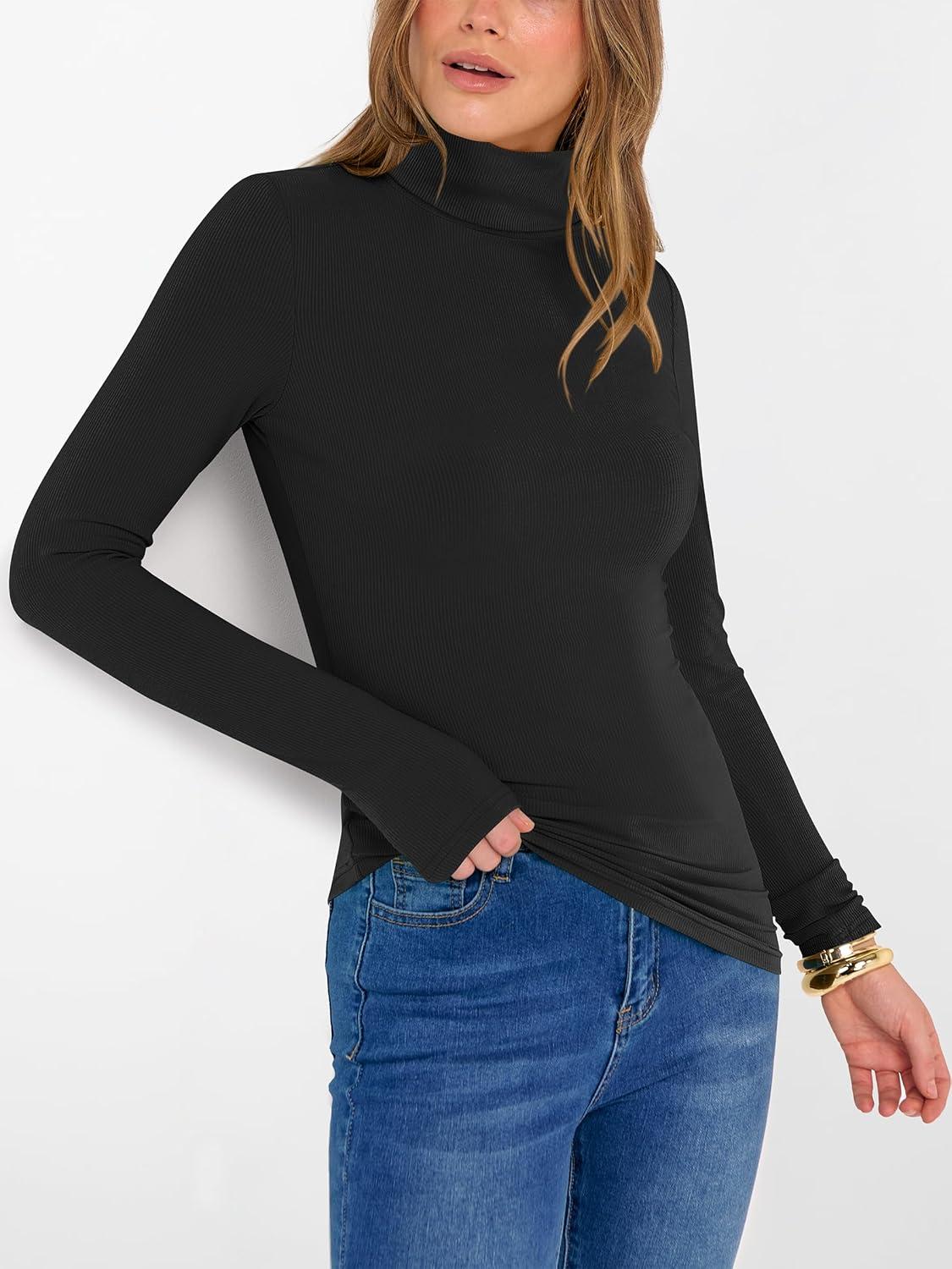 ANRABESS Women's Long Sleeve Turtleneck Shirts Casual Ribbed Basic Tee Slim Soft Thermal Tops 2025 Fall Going Out Clothes(Black)