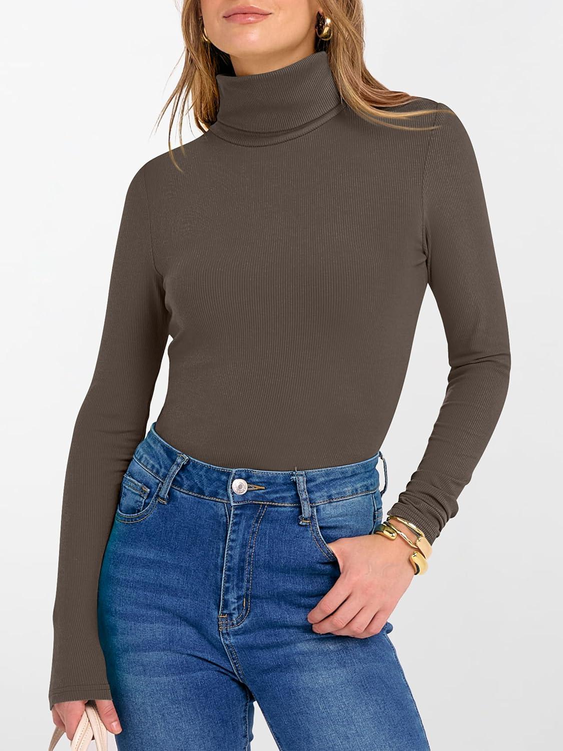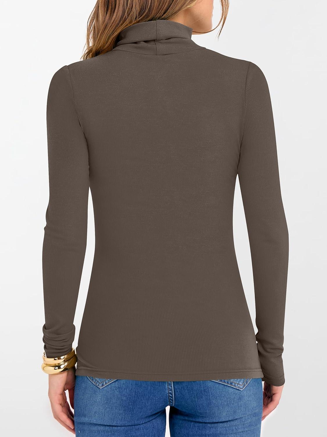 ANRABESS Women’s Long Sleeve Turtleneck Shirts Casual Ribbed Basic Tee Slim Soft Thermal Tops 2025 Fall Going Out Clothes(Brown)
