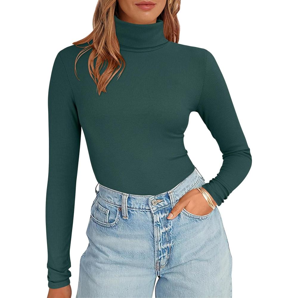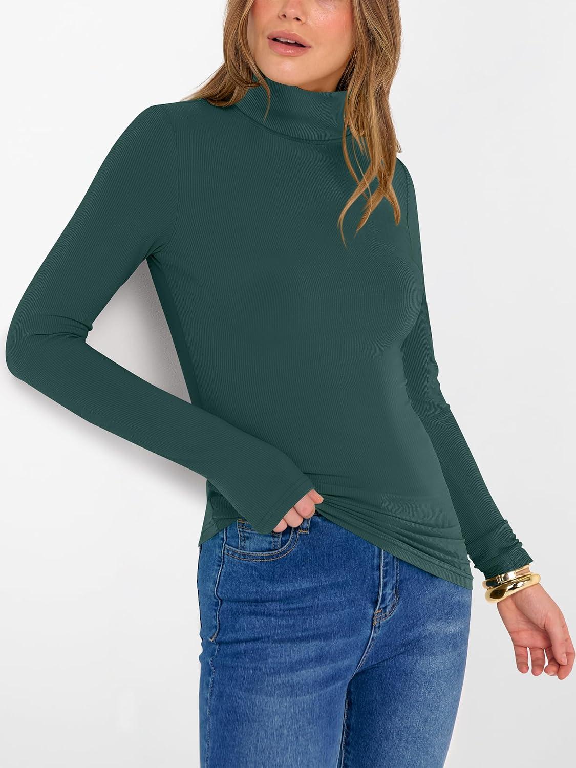ANRABESS Women's Long Sleeve Turtleneck Shirts Casual Ribbed Basic Tee Slim Soft Thermal Tops 2025 Fall Going Out Clothes(Dark Green)