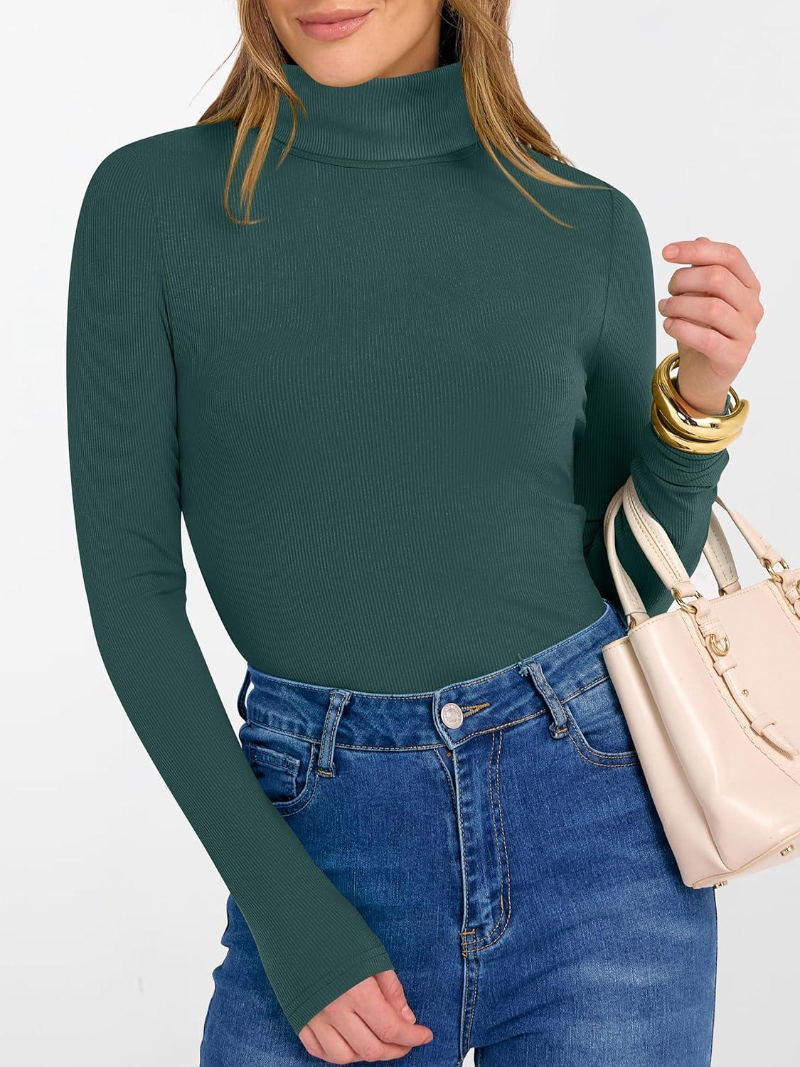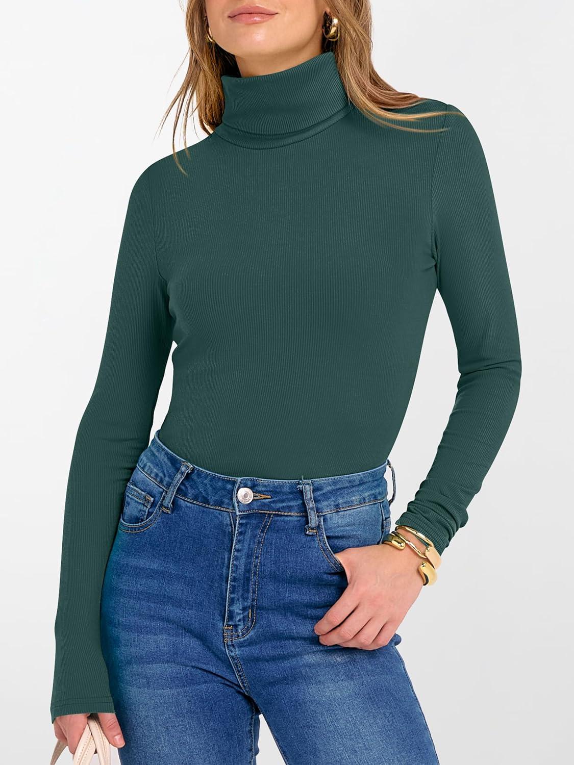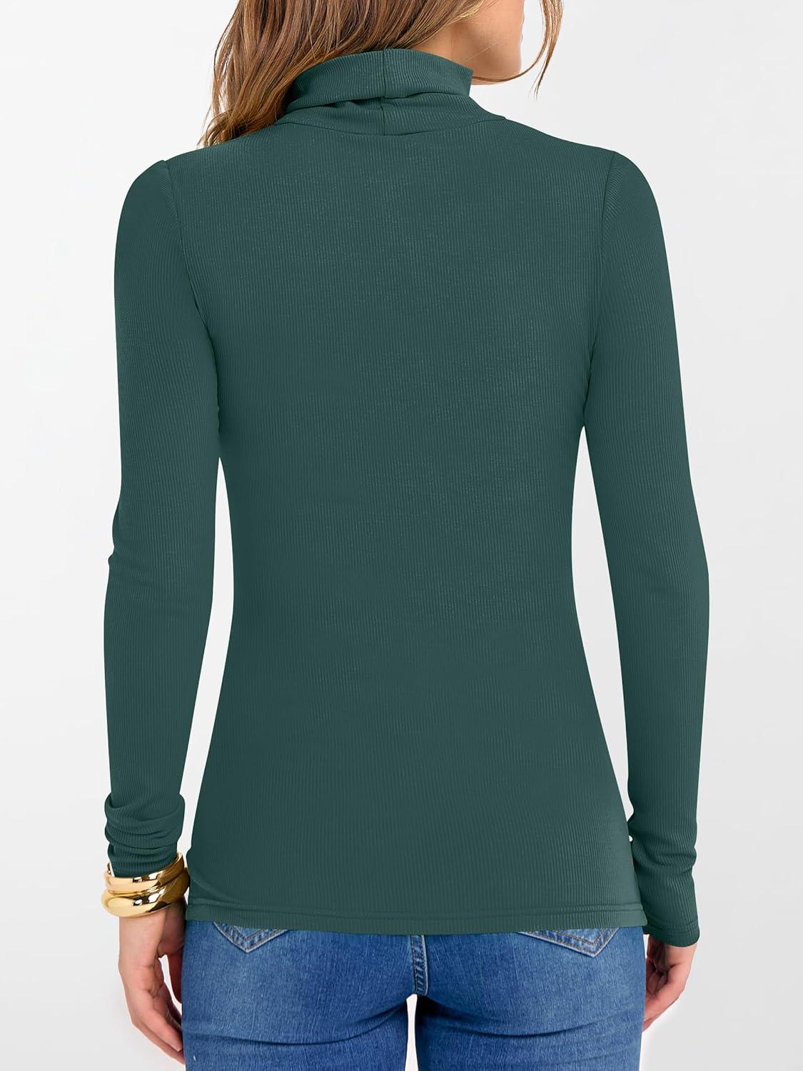 ANRABESS Women’s Long Sleeve Turtleneck Shirts Casual Ribbed Basic Tee Slim Soft Thermal Tops 2025 Fall Going Out Clothes(Dark Green)