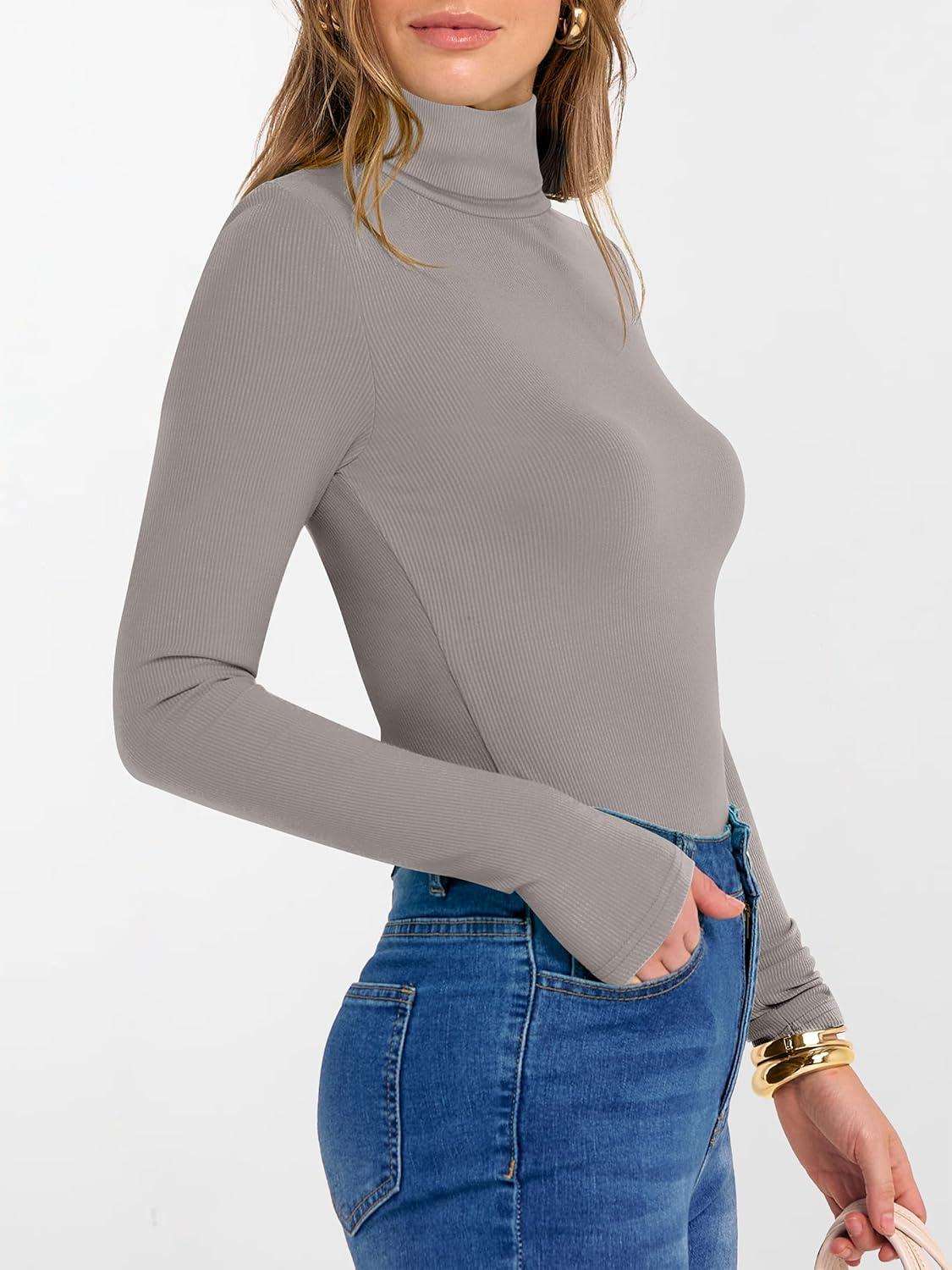 ANRABESS Women’s Long Sleeve Turtleneck Shirts Casual Ribbed Basic Tee Slim Soft Thermal Tops 2025 Fall Going Out Clothes(Grey)