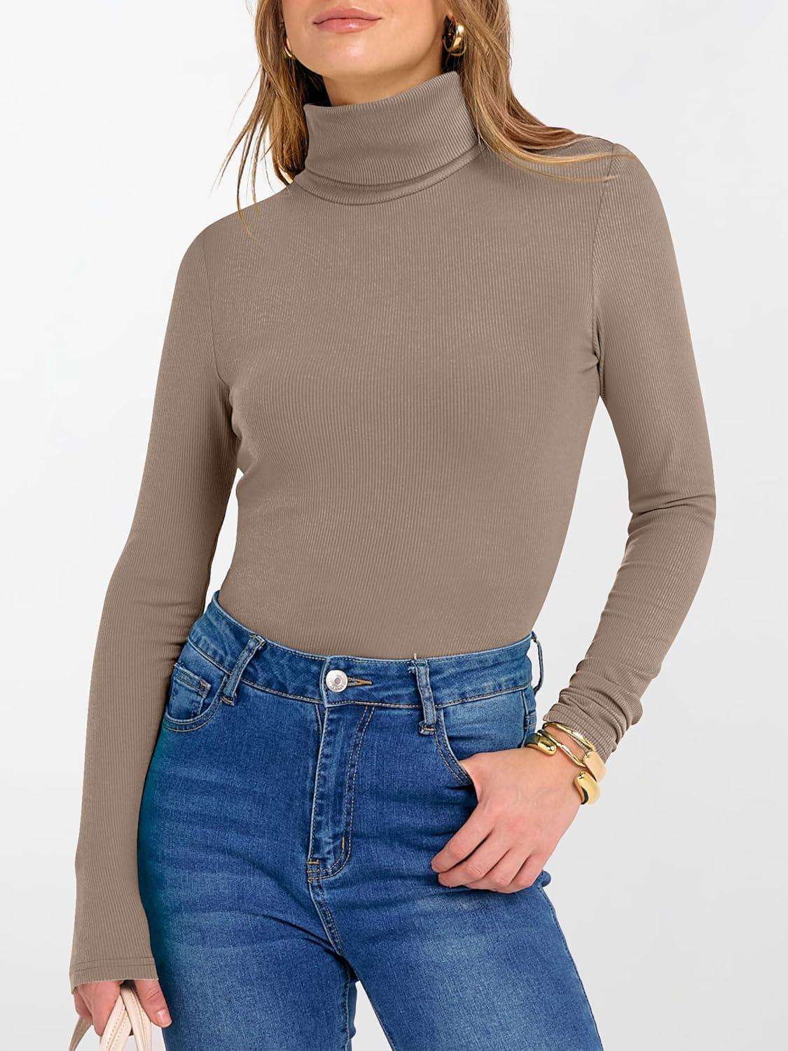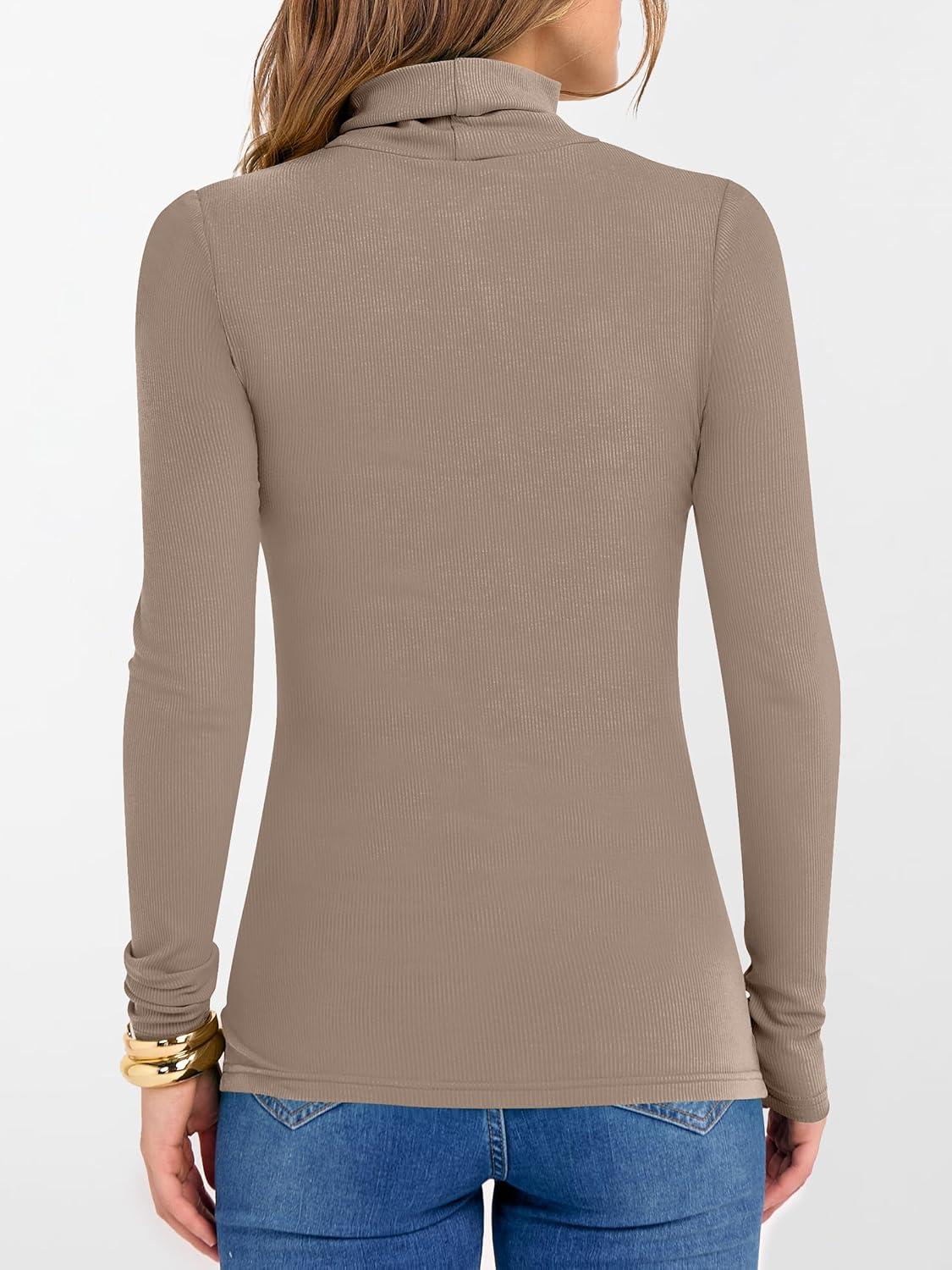 ANRABESS Women's Long Sleeve Turtleneck Shirts Casual Ribbed Basic Tee Slim Soft Thermal Tops 2025 Fall Going Out Clothes(Khaki)