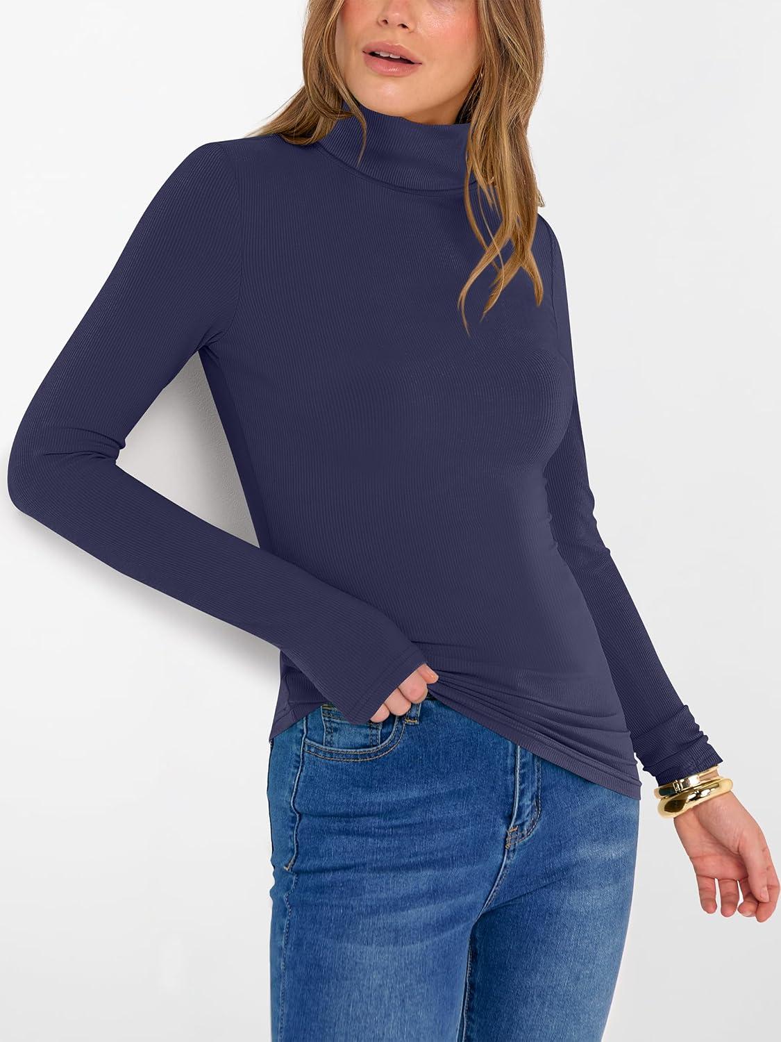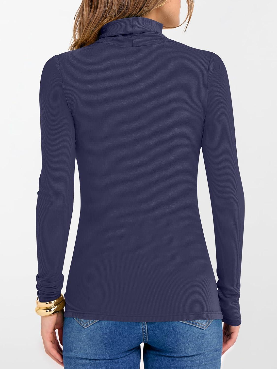 ANRABESS Women’s Long Sleeve Turtleneck Shirts Casual Ribbed Basic Tee Slim Soft Thermal Tops 2025 Fall Going Out Clothes(Navy Blue)