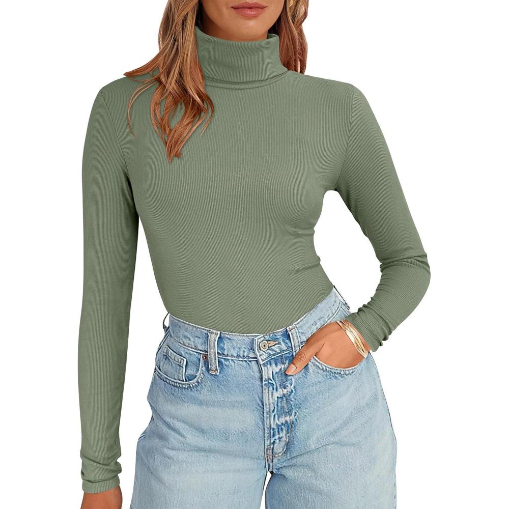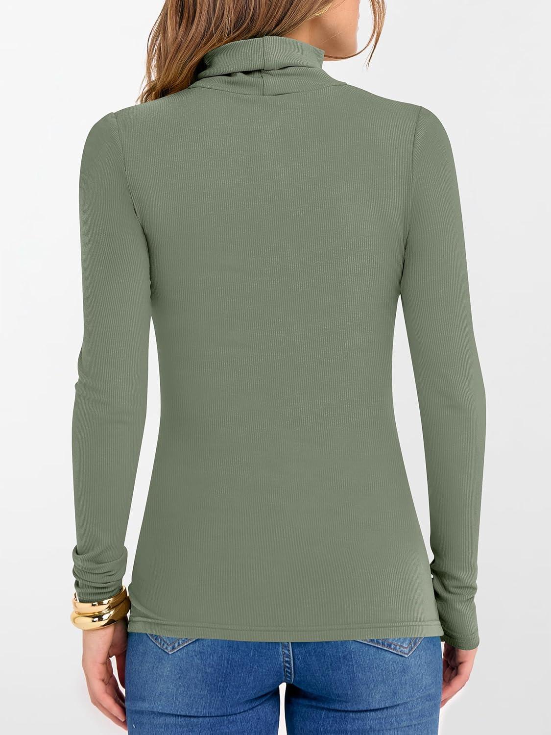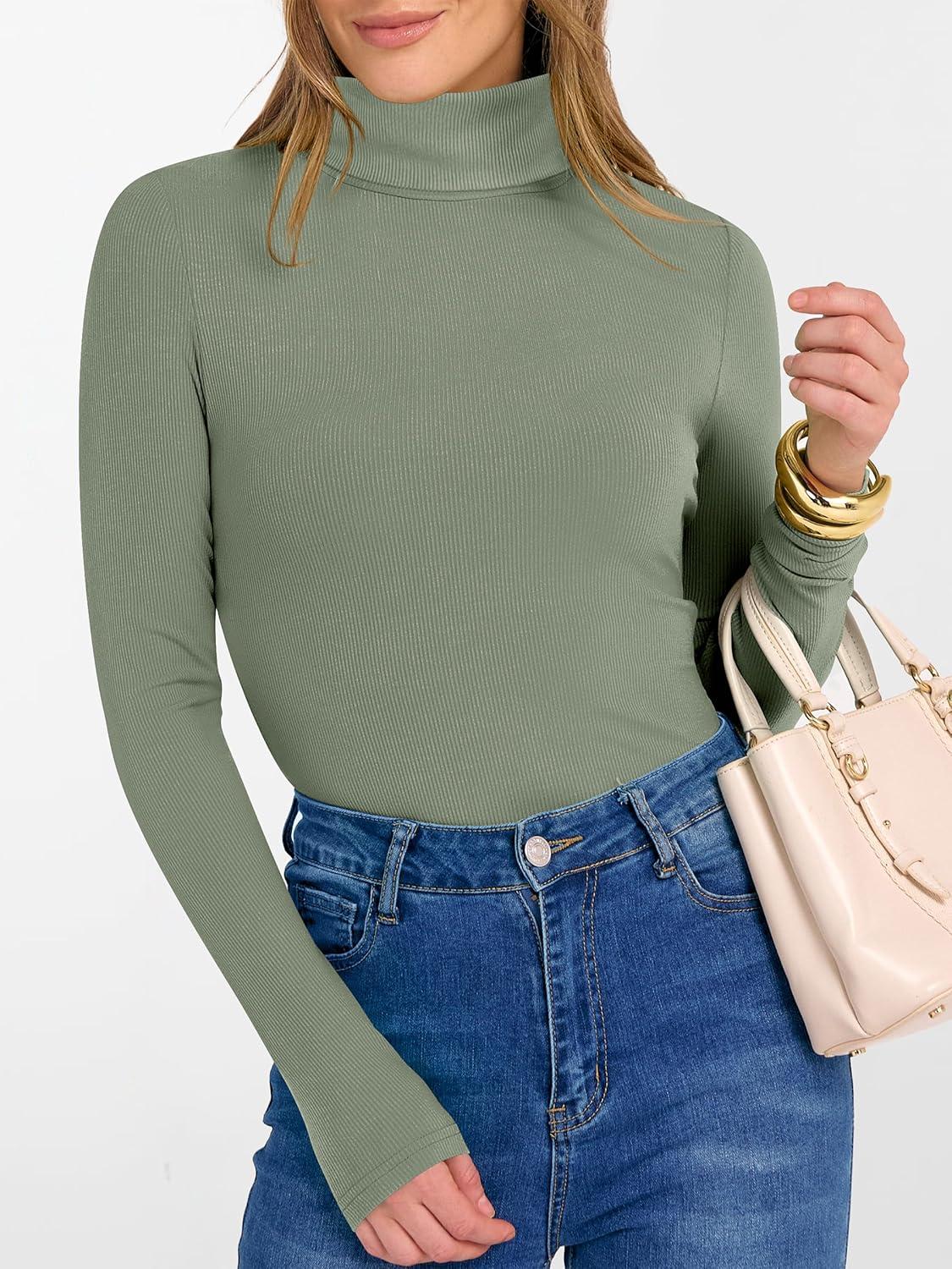 ANRABESS Women's Long Sleeve Turtleneck Shirts Casual Ribbed Basic Tee Slim Soft Thermal Tops 2025 Fall Going Out Clothes(Sage Green)
