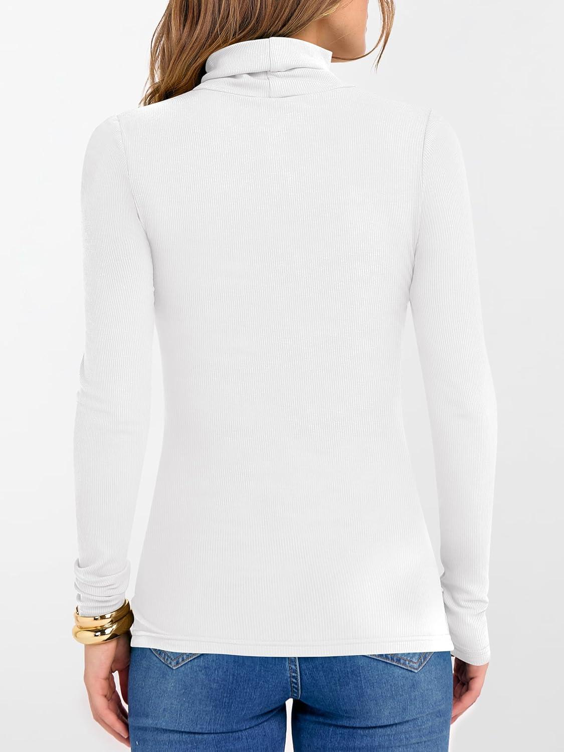 ANRABESS Women's Long Sleeve Turtleneck Shirts Casual Ribbed Basic Tee Slim Soft Thermal Tops 2025 Fall Going Out Clothes(White)
