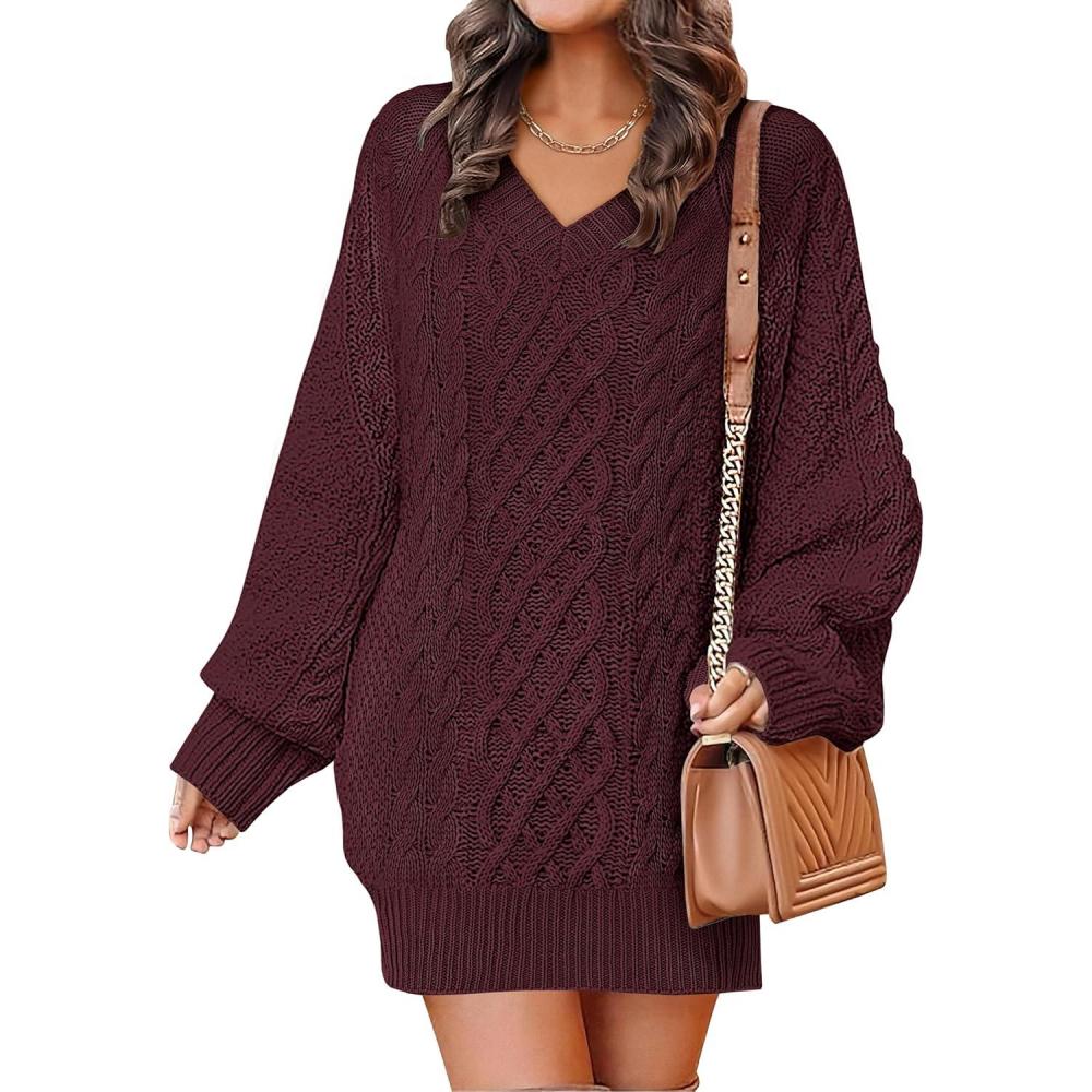 Be the first to review “ANRABESS Womens Long Sleeve V Neck Oversized Cable Knit Mini Sweater Dresses 2025 Winter Fall Trendy Pullover Tunic Outfits(Wine Red)”