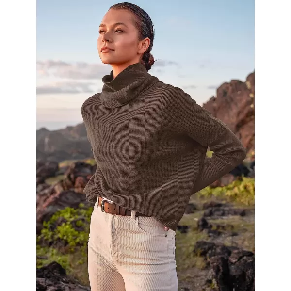 imageANRABESS Womens Long Sleeve Waffle Knit Sweater Button Down Open Front Casual Cardigan amp Detached TurtleneckMutmeg