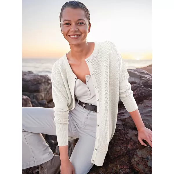ANRABESS Women’s Long Sleeve Waffle Knit Sweater Button Down Open Front Casual Cardigan & Detached Turtleneck(White)