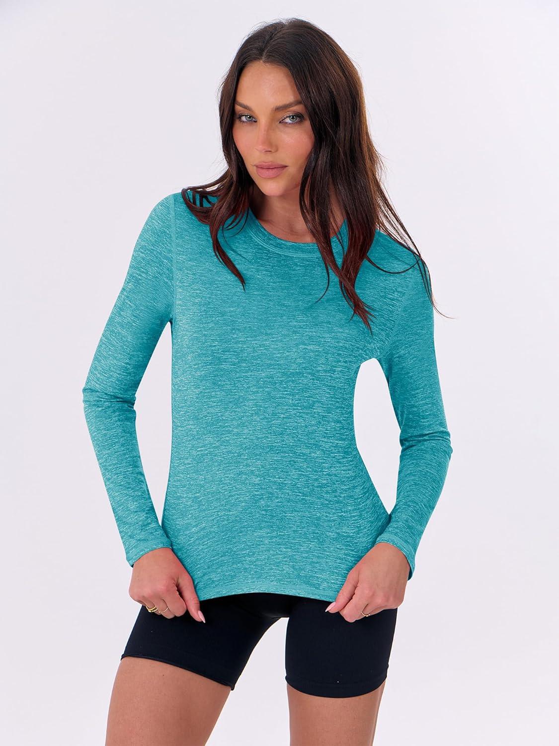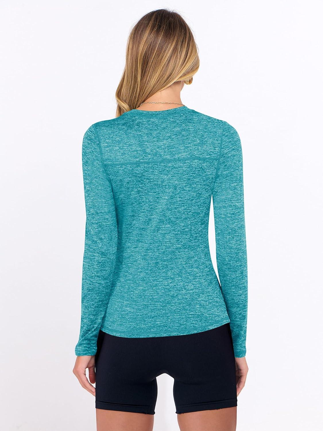 ANRABESS Womens Long Sleeve Workout Quick Dry Fitted Yoga Gym Athletic Shirts(Turquoise)
