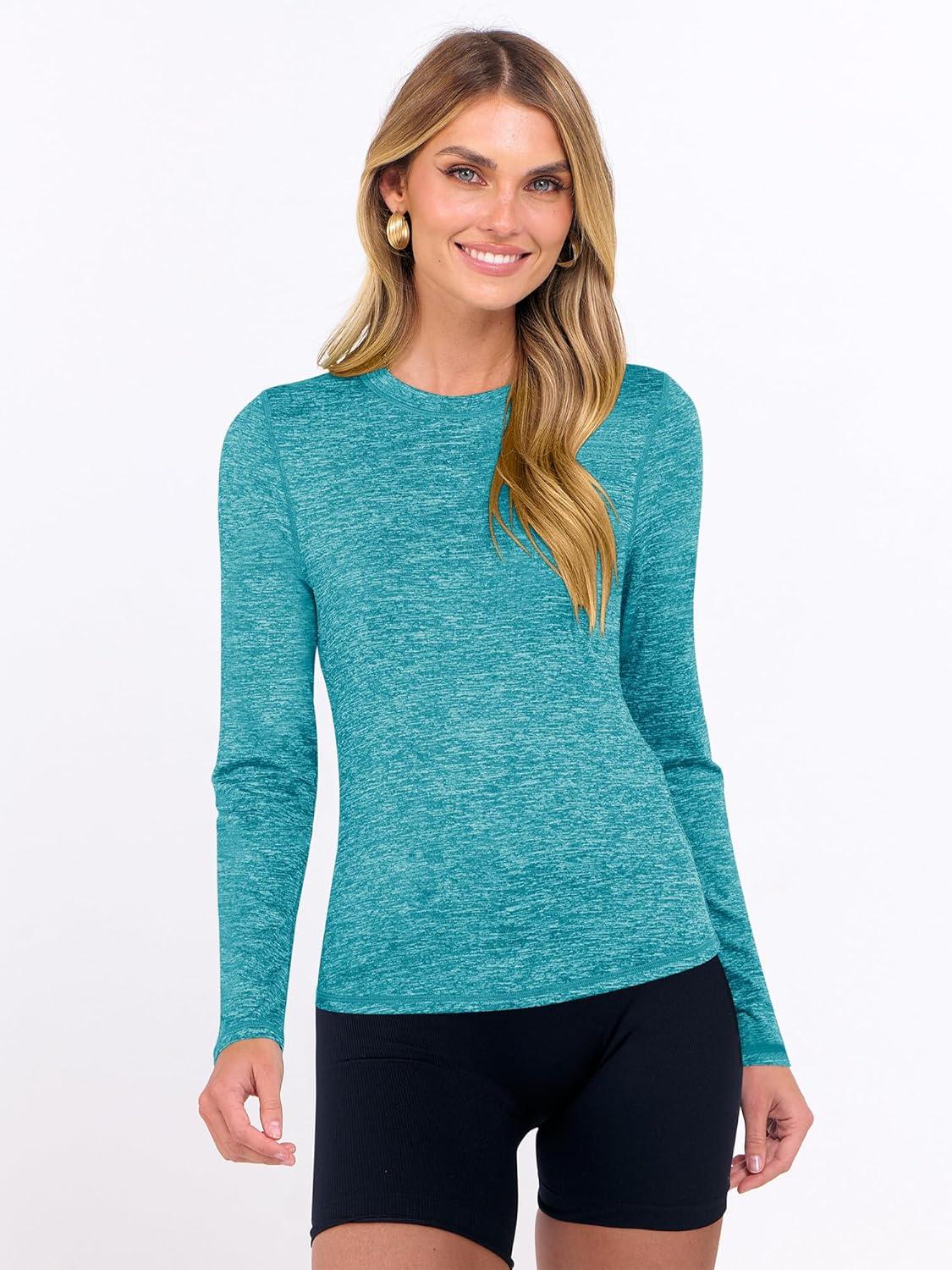 imageANRABESS Womens Long Sleeve Workout Quick Dry Fitted Yoga Gym Athletic ShirtsTurquoise