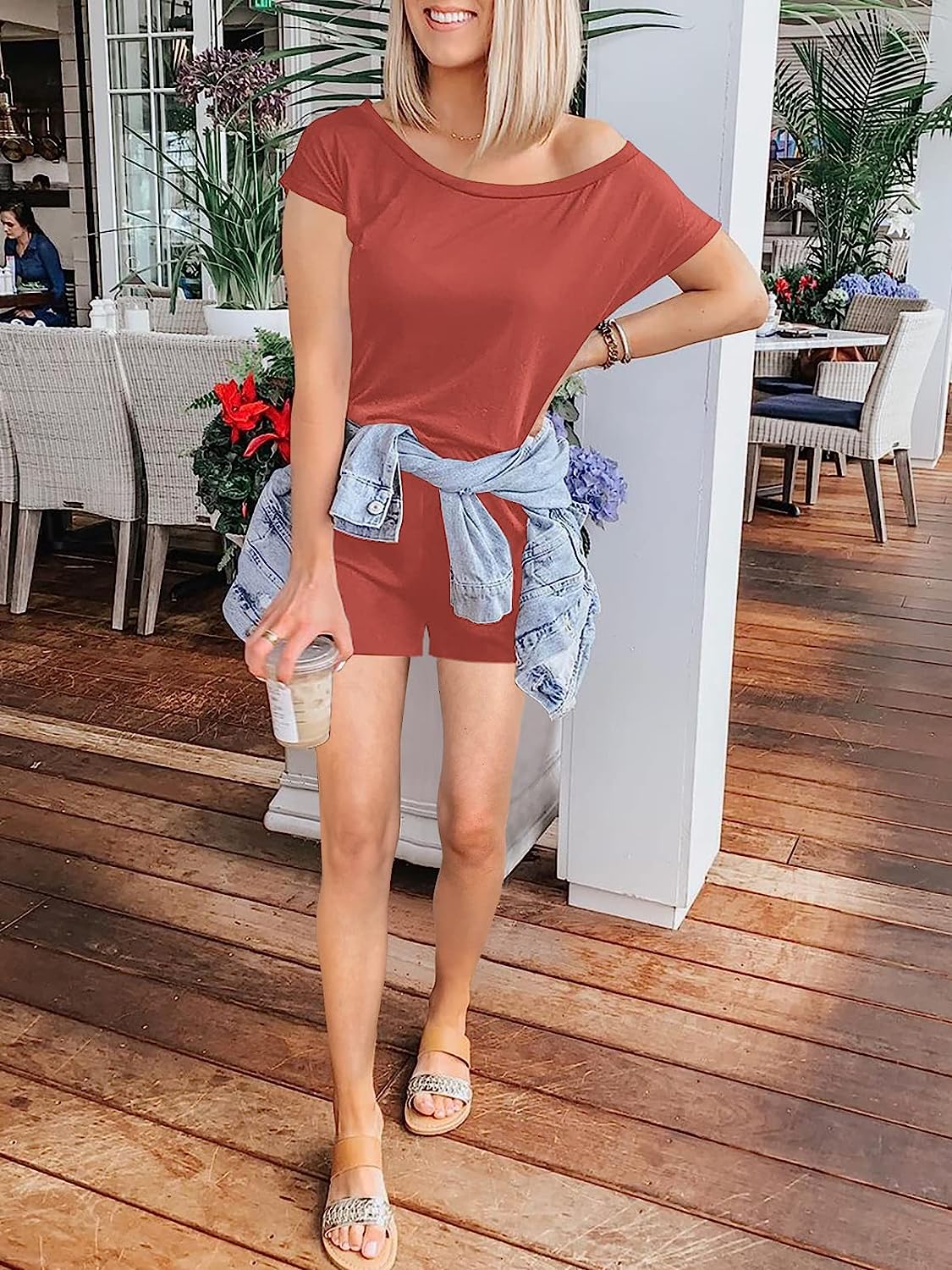 Design: Boat neck,short sleeve,one shoulder off,keyhole back,elastic waist,beam foot.Pair with heels and jewelry or down with sandal for a daily.