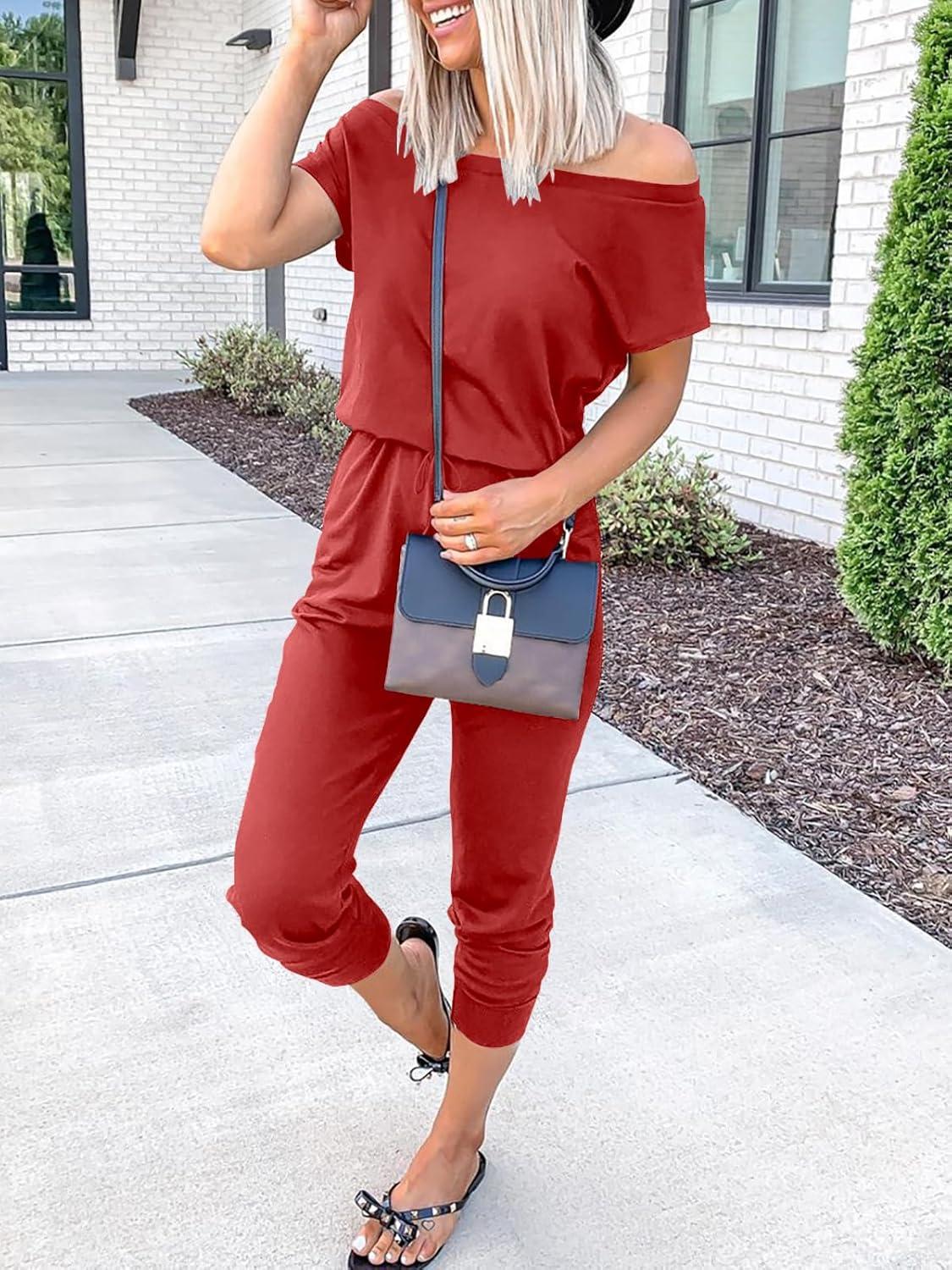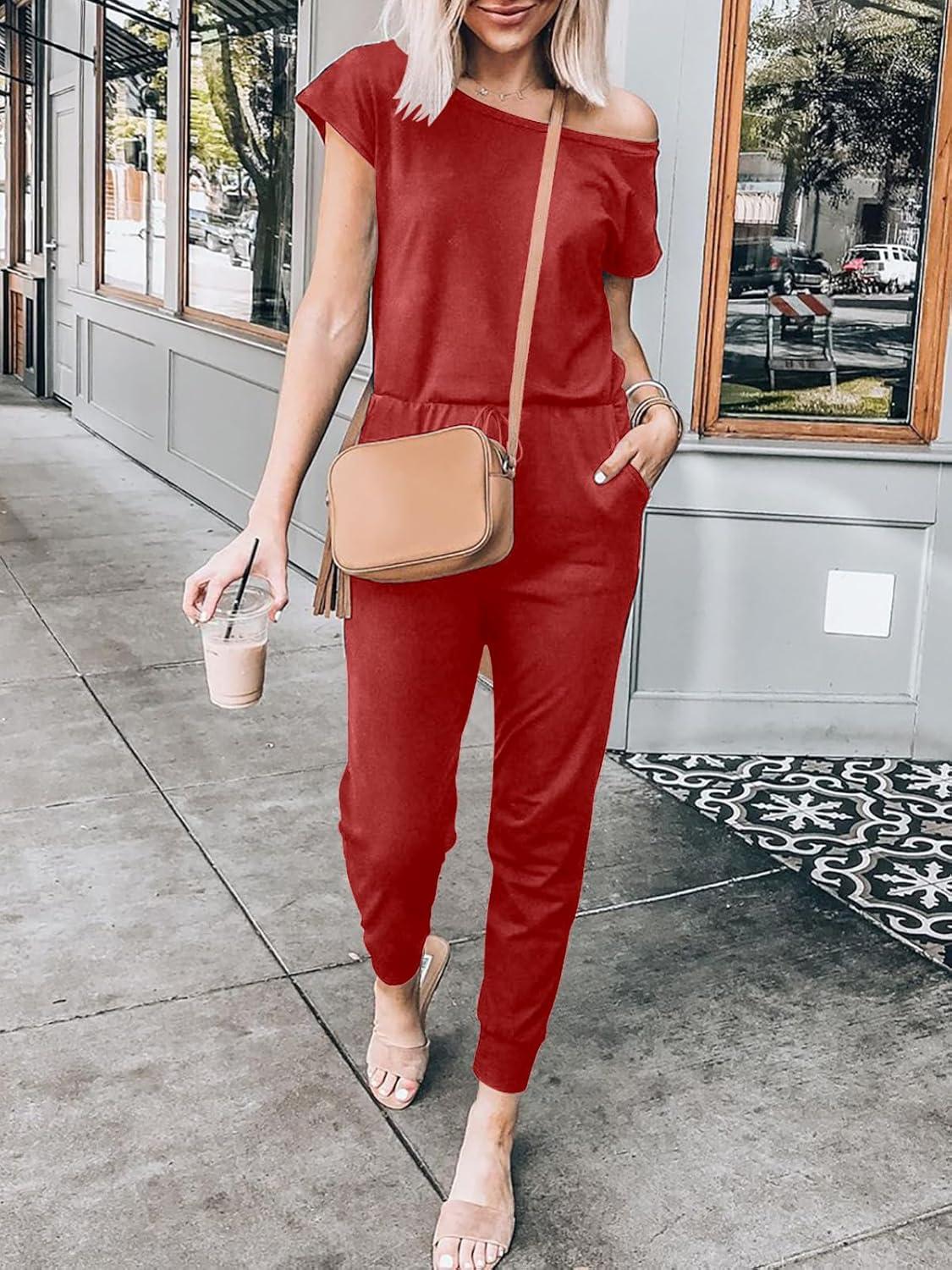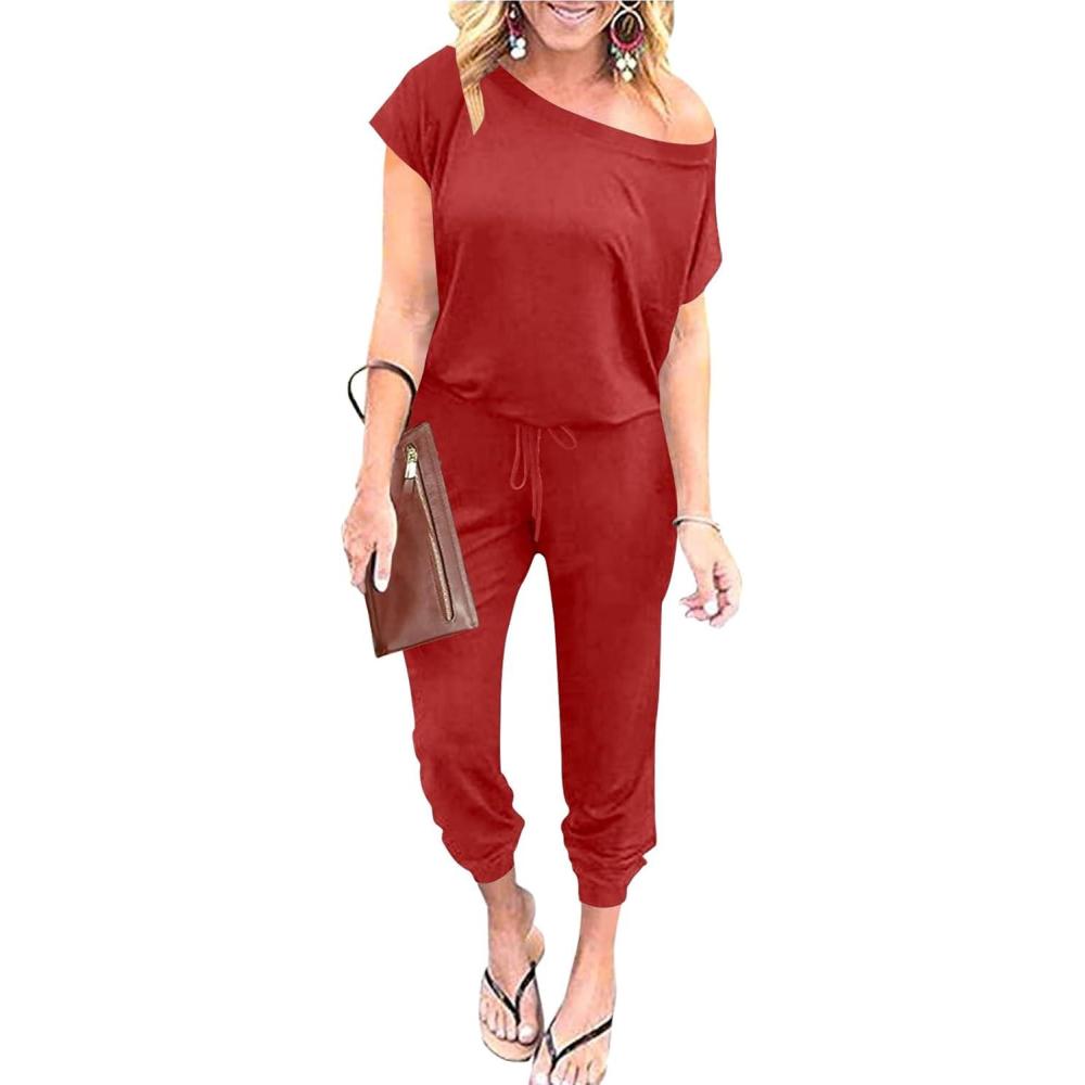 imageANRABESS Womens Loose Summer Casual Off Shoulder Elastic Waist Stretchy Long Romper Jumpsuit01red