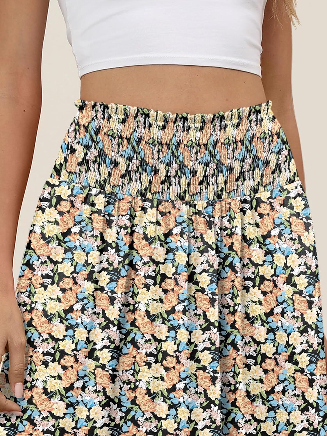 ANRABESS Women's Maxi Skirts Summer Boho Floral High Waisted Flowy Swing Pleated Beach Long Skirt with Pockets(Floral Orange Yellow)