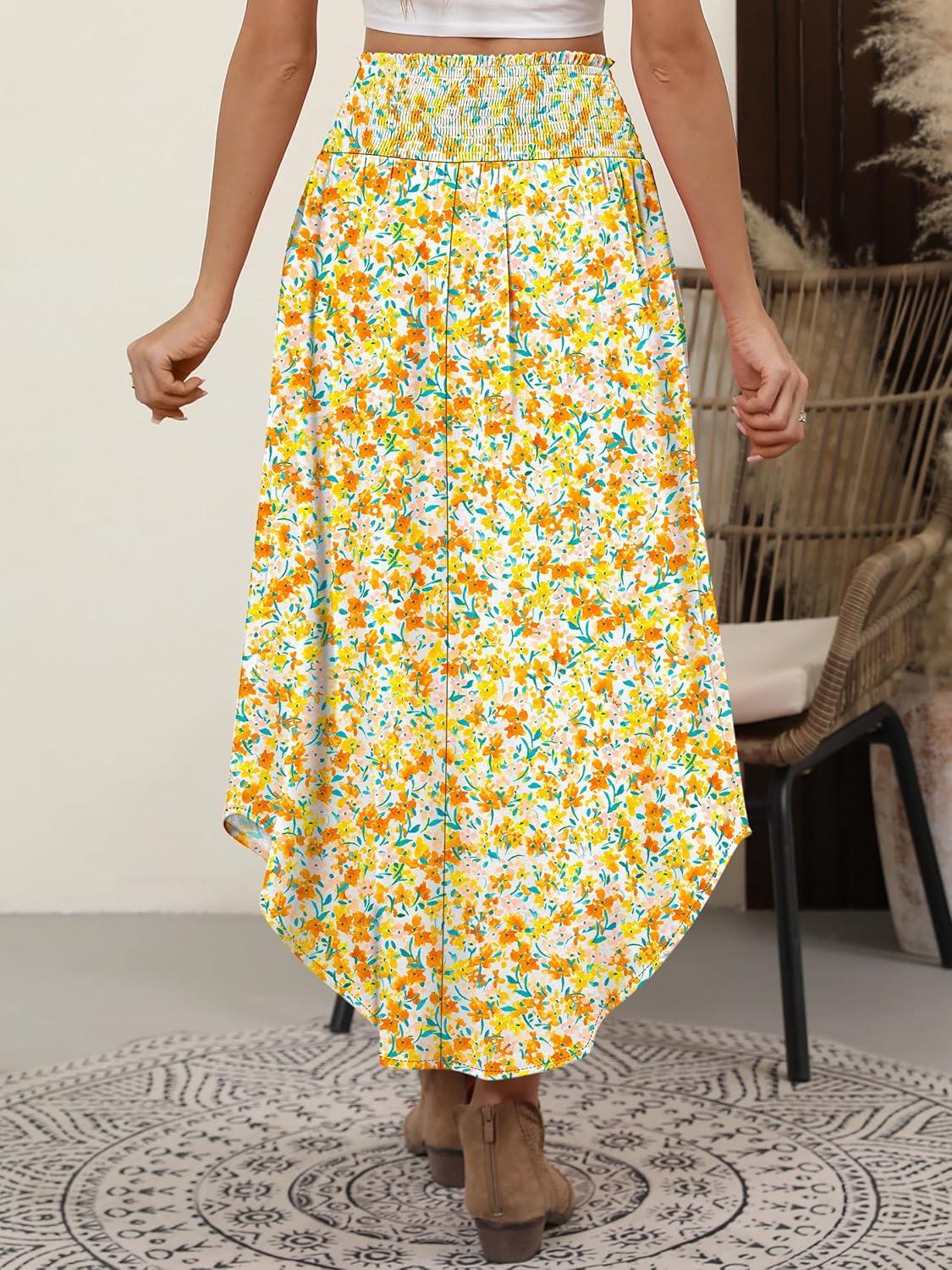 ANRABESS Women's Maxi Skirts Summer Boho Floral High Waisted Flowy Swing Pleated Beach Long Skirt with Pockets(Floral Red Yellow)