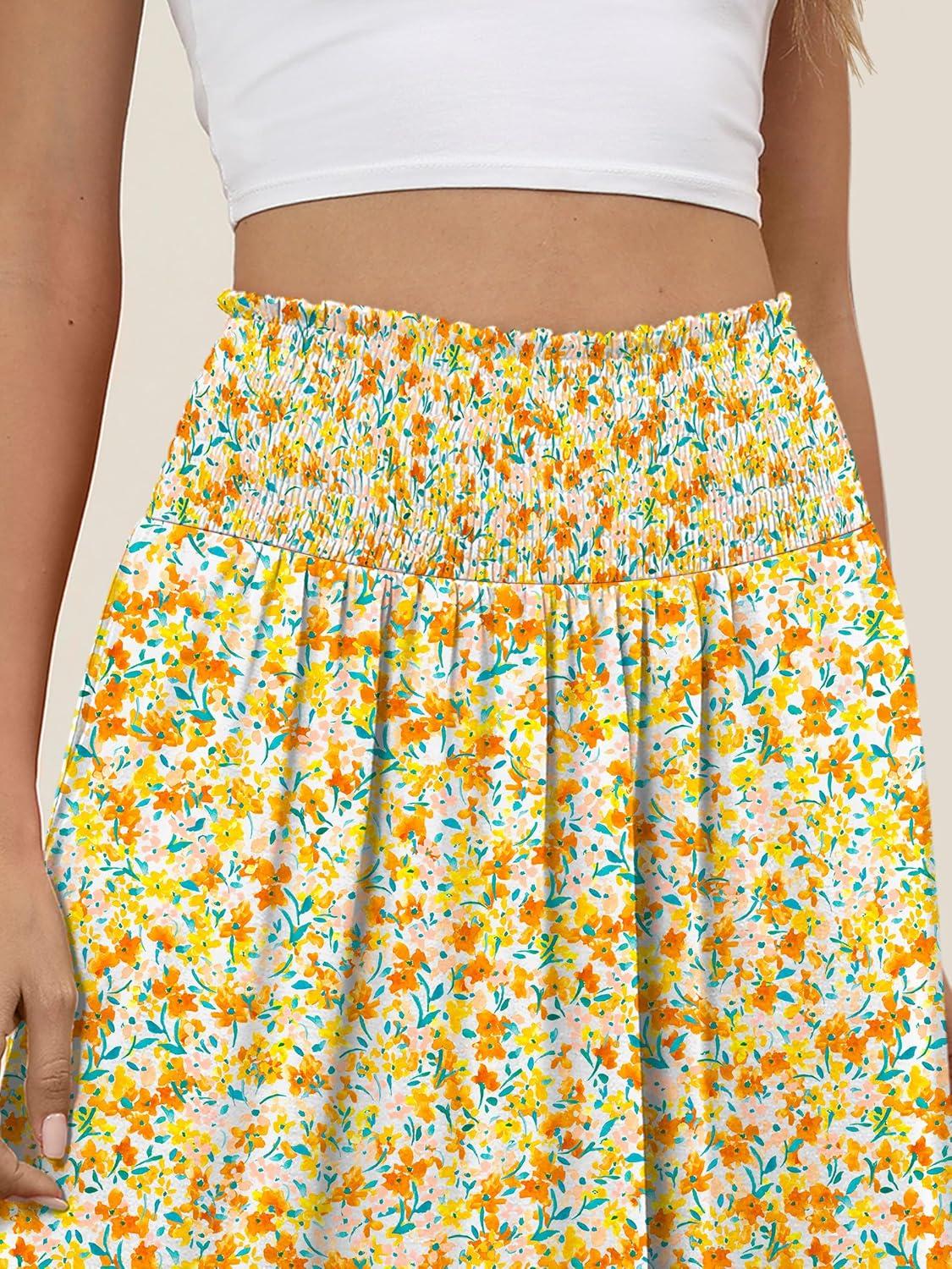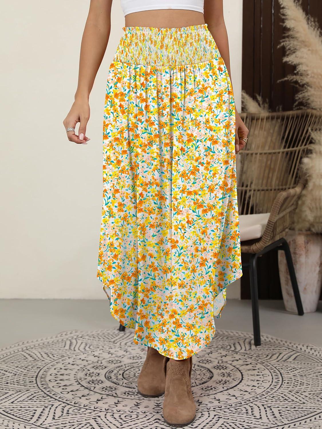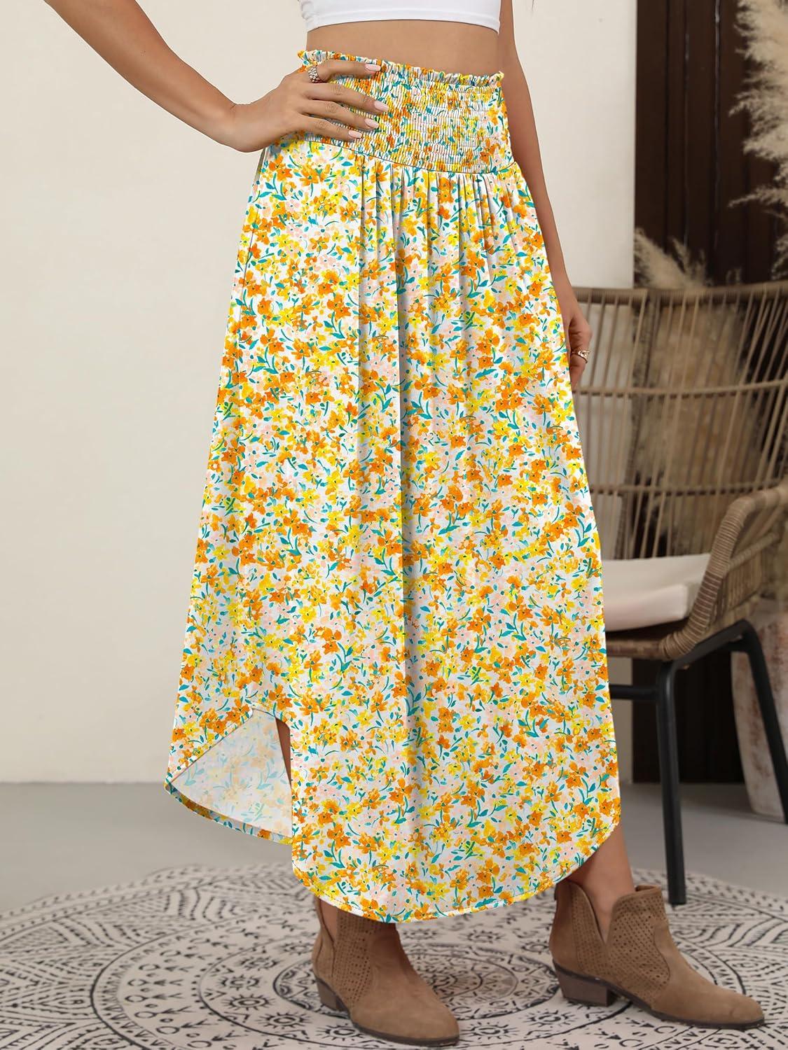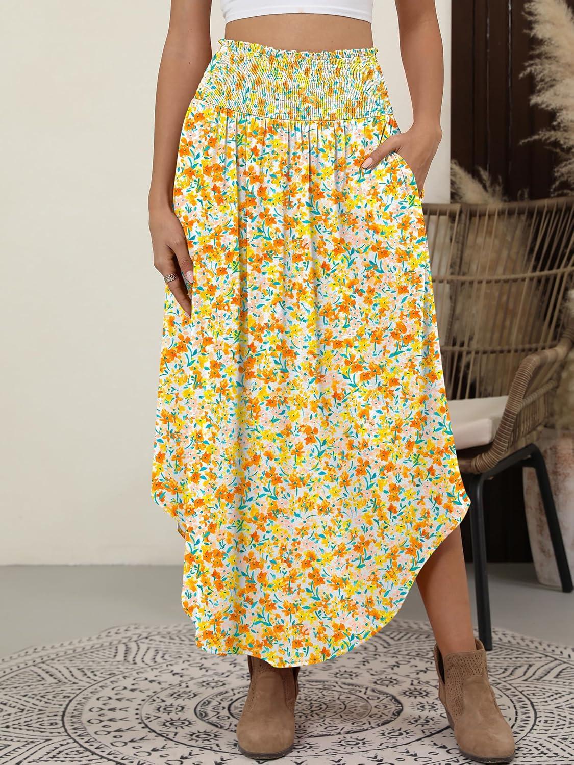 ANRABESS Women’s Maxi Skirts Summer Boho Floral High Waisted Flowy Swing Pleated Beach Long Skirt with Pockets(Floral Yellow Purple)