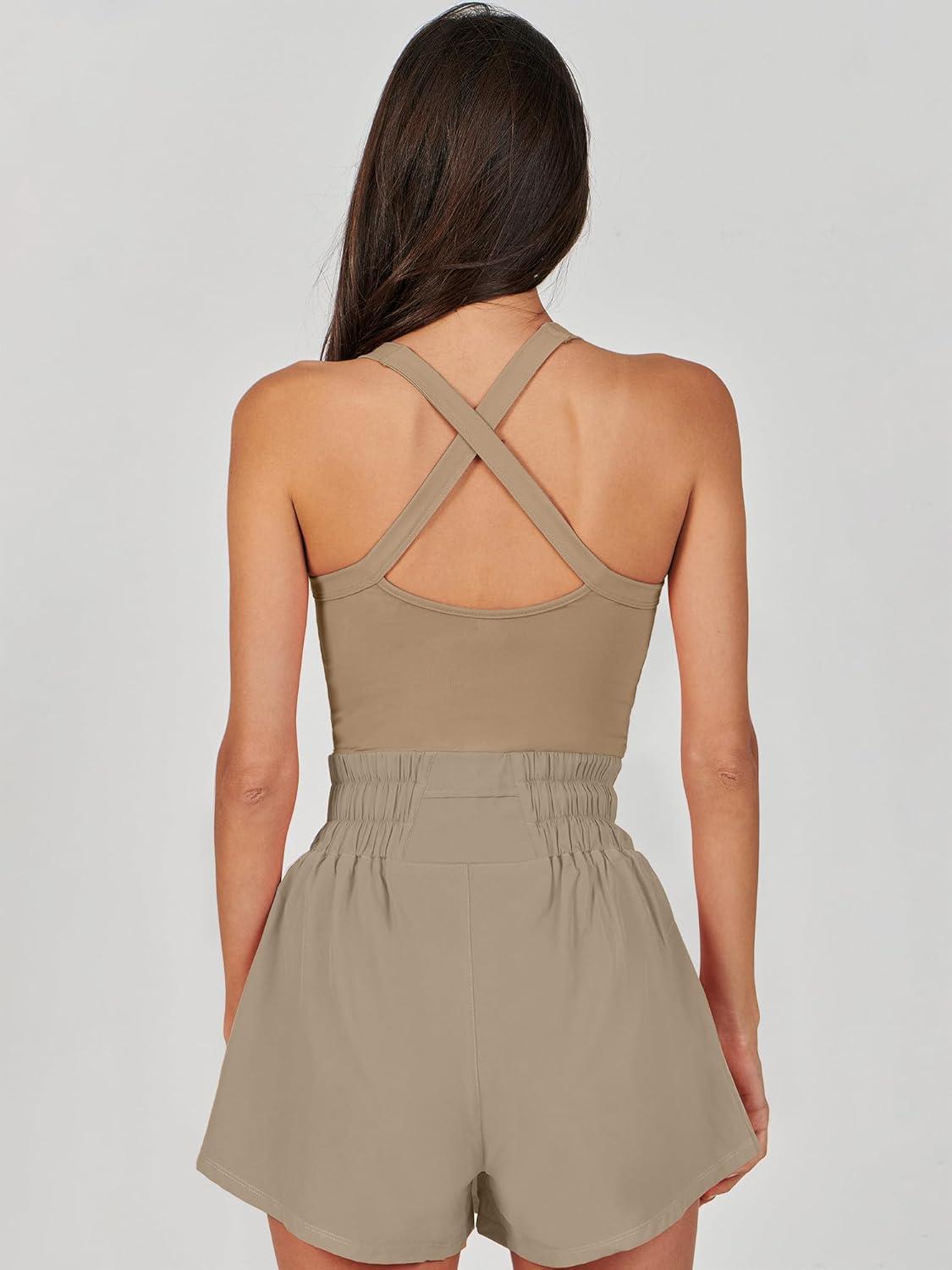 imageANRABESS Womens Mini Tennis Dresses Skort Summer Sleeveless One Piece Workout Romper Dress with Shorts Athletic 2025 OutfitKhaki