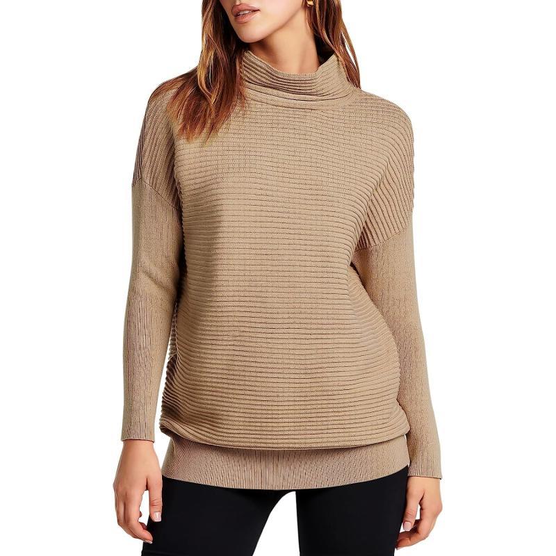 imageANRABESS Womens Mock Neck Batwing Long Sleeve Ribbed Knit Casual Soft Pullover Sweater Jumper TopDeep Apricot