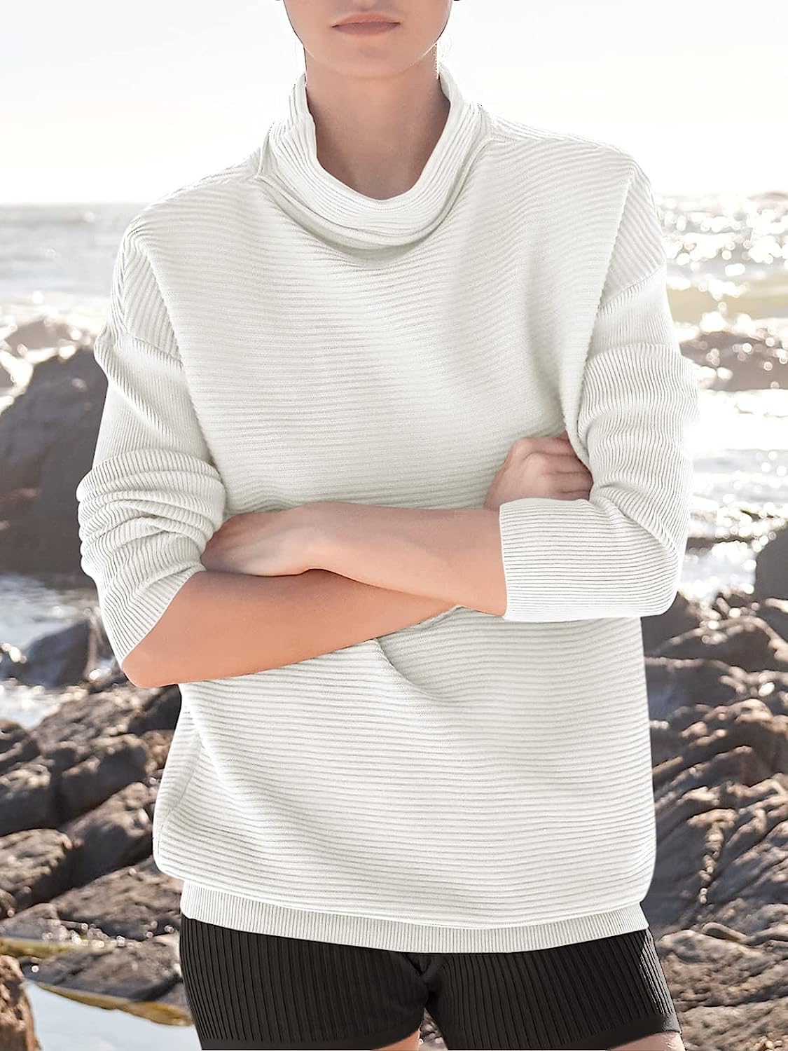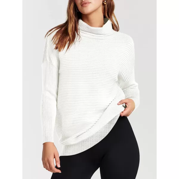 ANRABESS Women’s Mock Neck Batwing Long Sleeve Ribbed Knit Casual Soft Pullover Sweater Jumper Top(White)