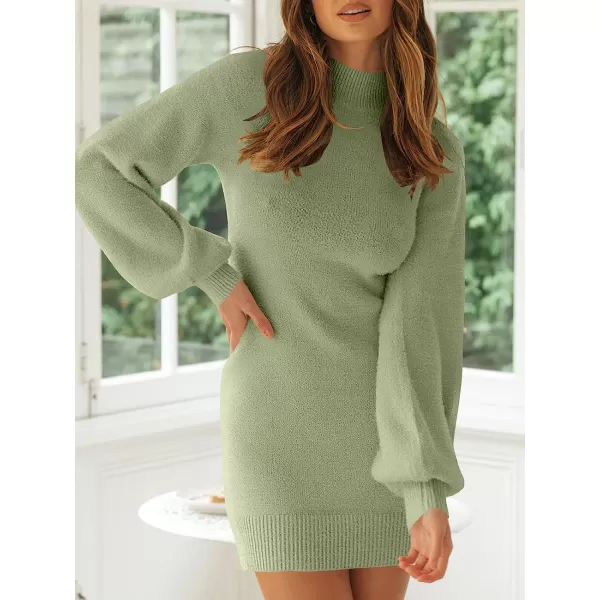 ANRABESS Women’s Mock Neck Ribbed Long Sleeve Bodycon Pullover Cute Mini Sweater Dress(Army Green)