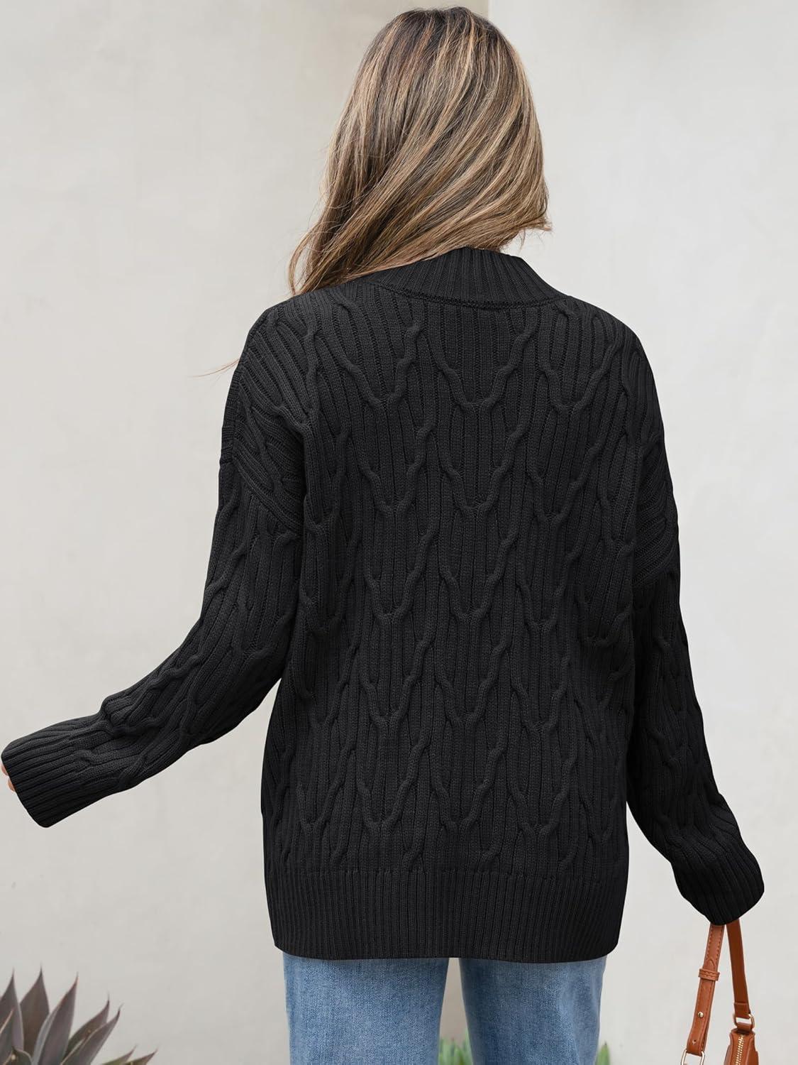ANRABESS Womens Mock Turtle Neck Sweaters Cable Knit Long Sleeve 2025 Fall Winter Tunic Sweater(Black)