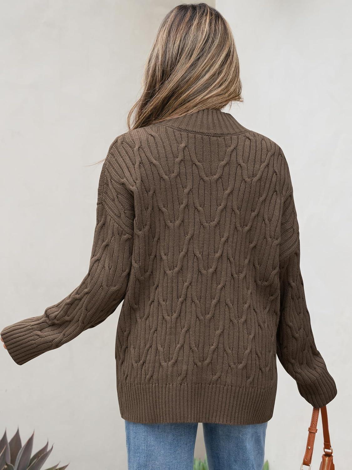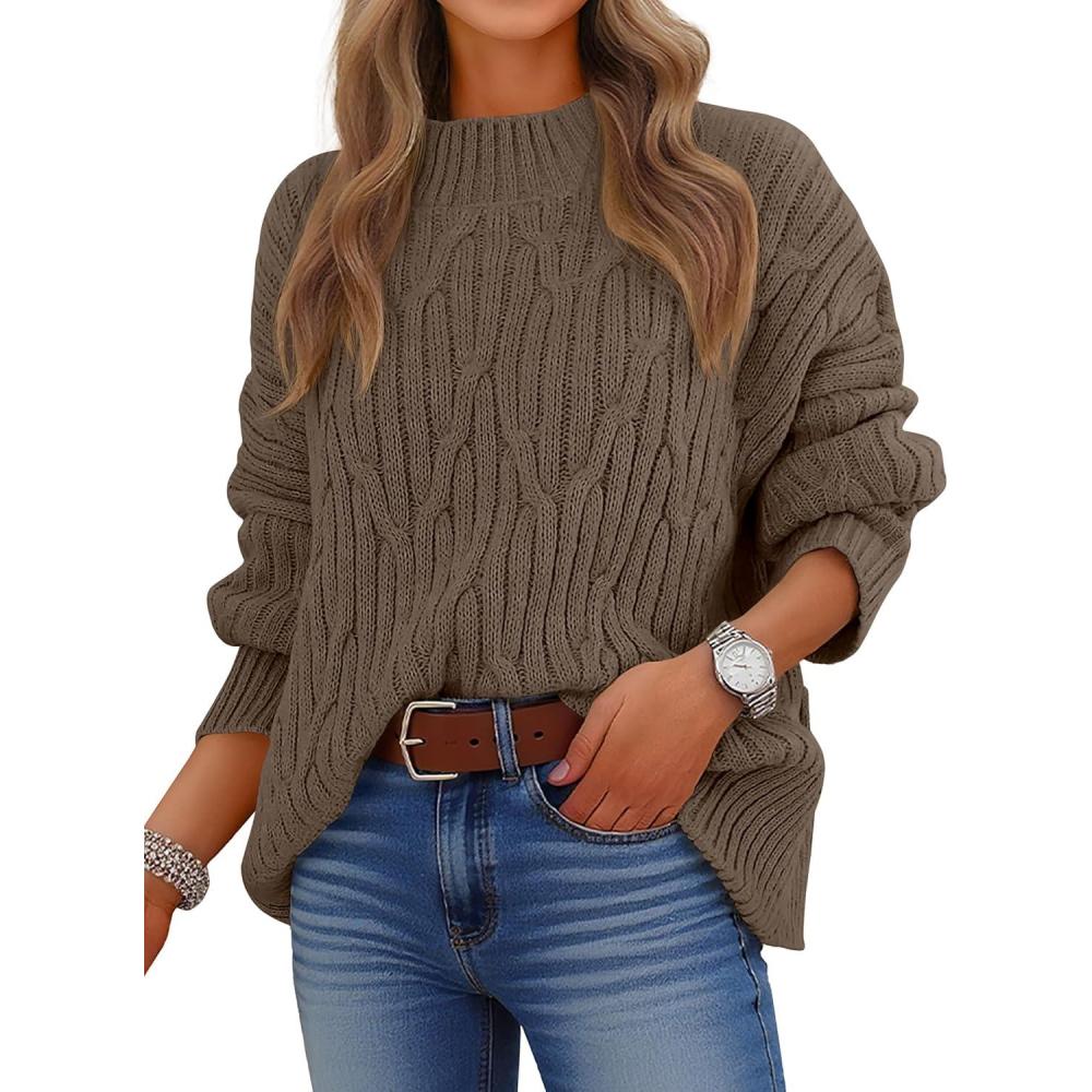 imageANRABESS Womens Mock Turtle Neck Sweaters Cable Knit Long Sleeve 2025 Fall Winter Tunic SweaterCoffee