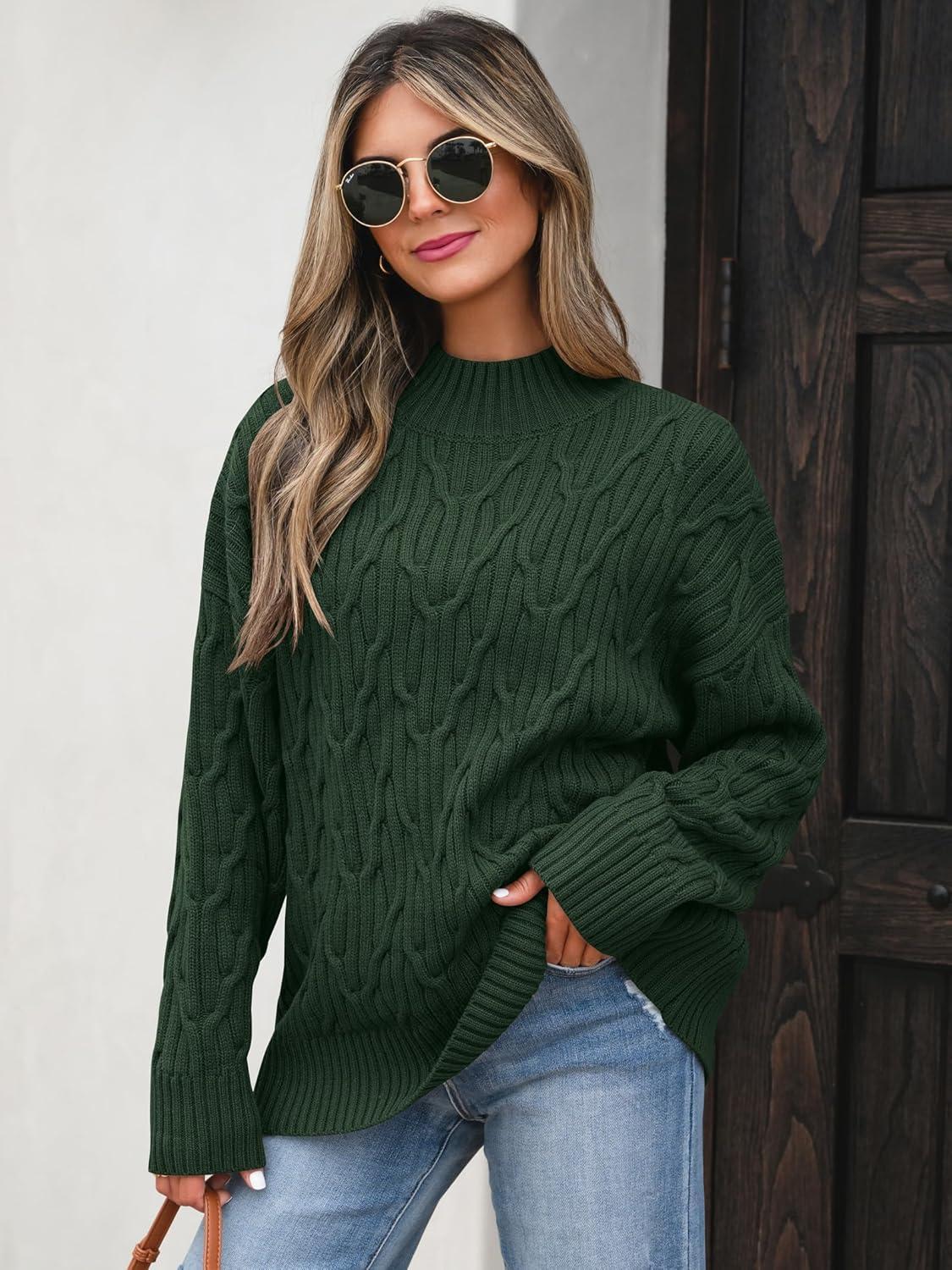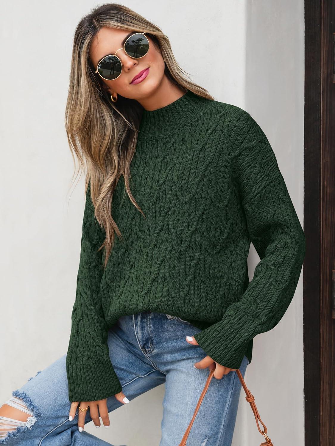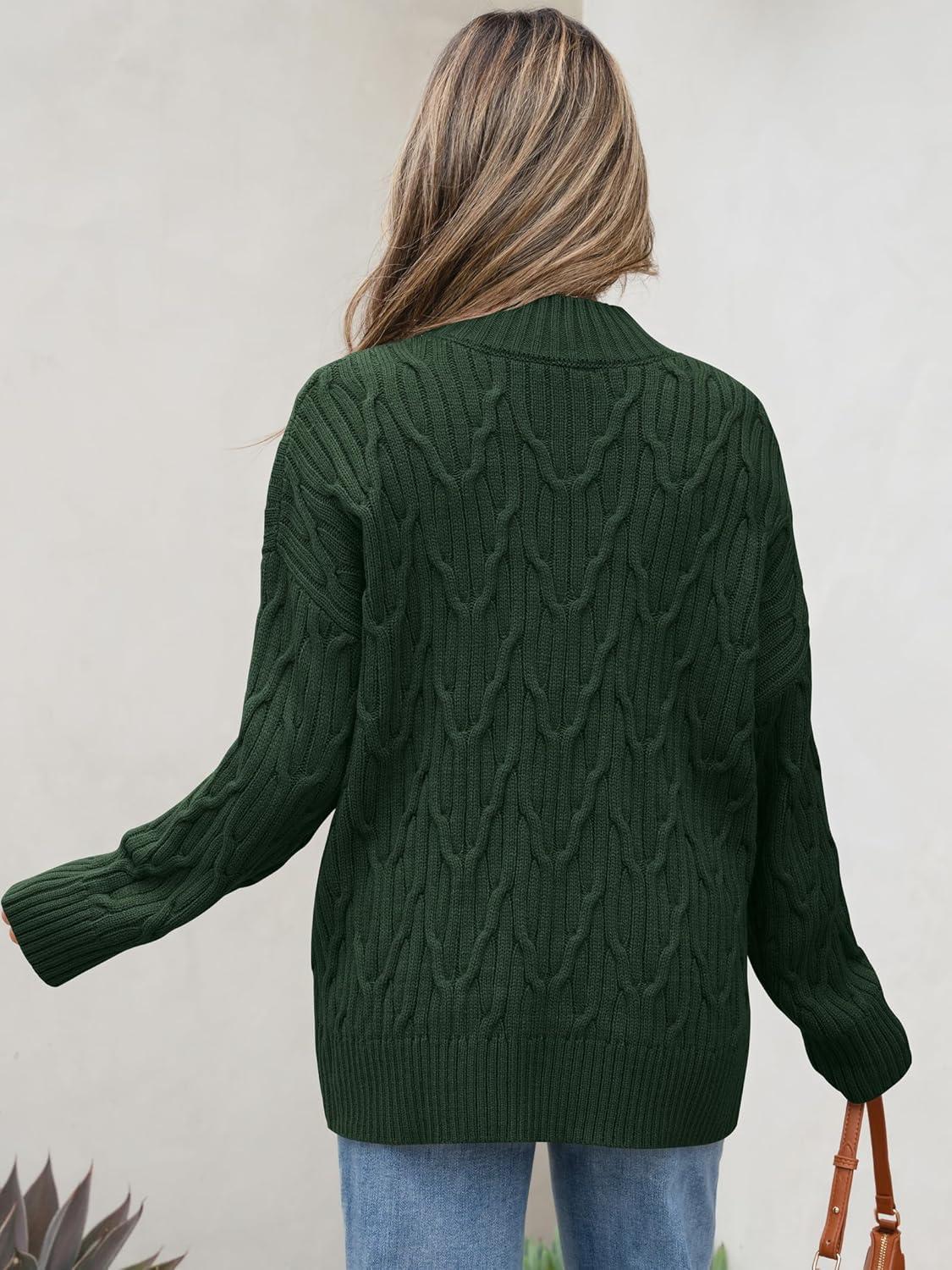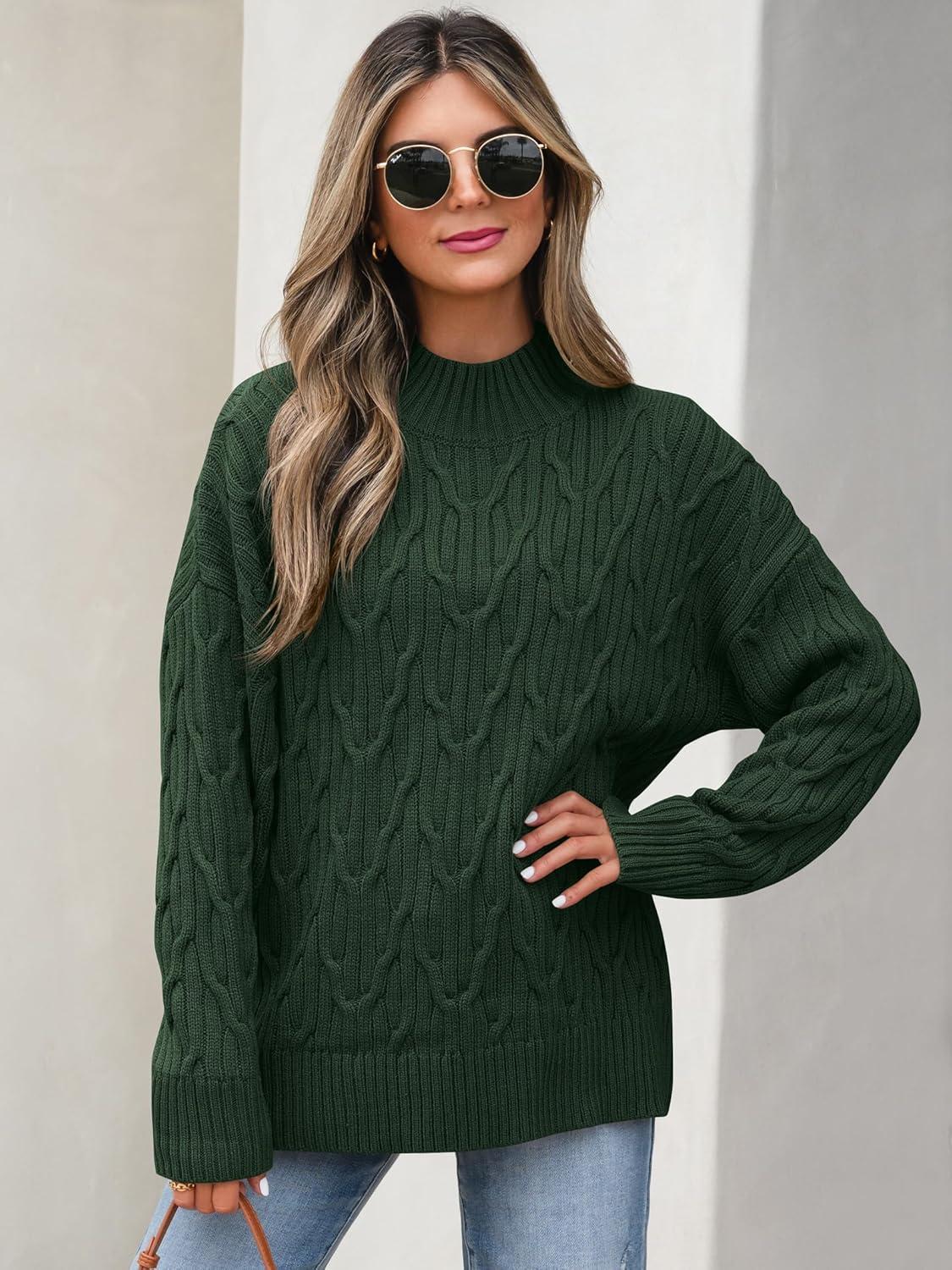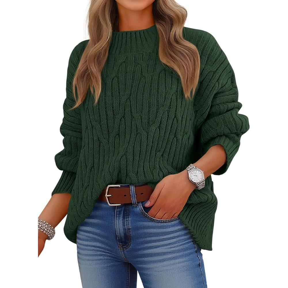 ANRABESS Womens Mock Turtle Neck Sweaters Cable Knit Long Sleeve 2025 Fall Winter Tunic Sweater(Deep Green)