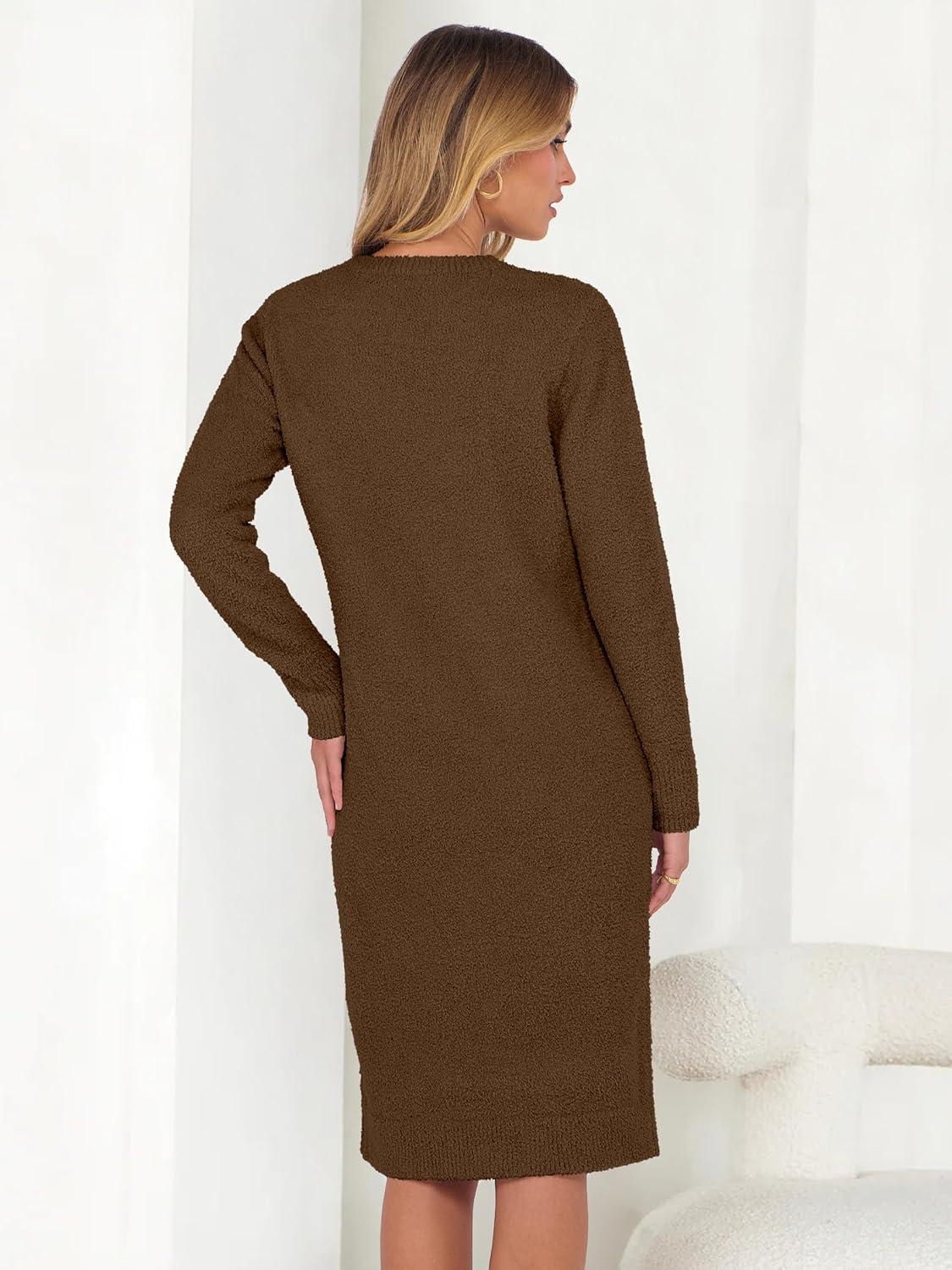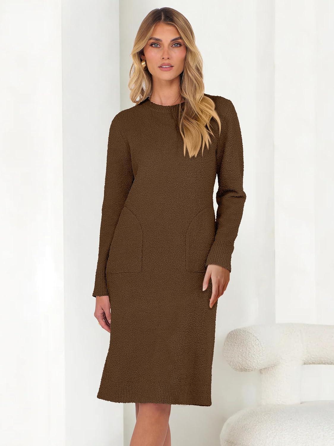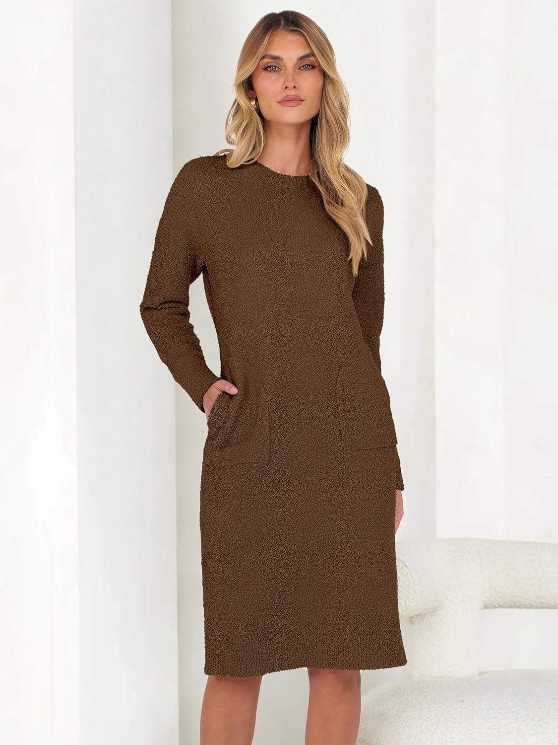 imageANRABESS Womens Nightgown Sweater Dress Long Sleeve Fuzzy Knit Cozy Casual Loungewear 2025 Winter Midi Dress with PocketsBrown