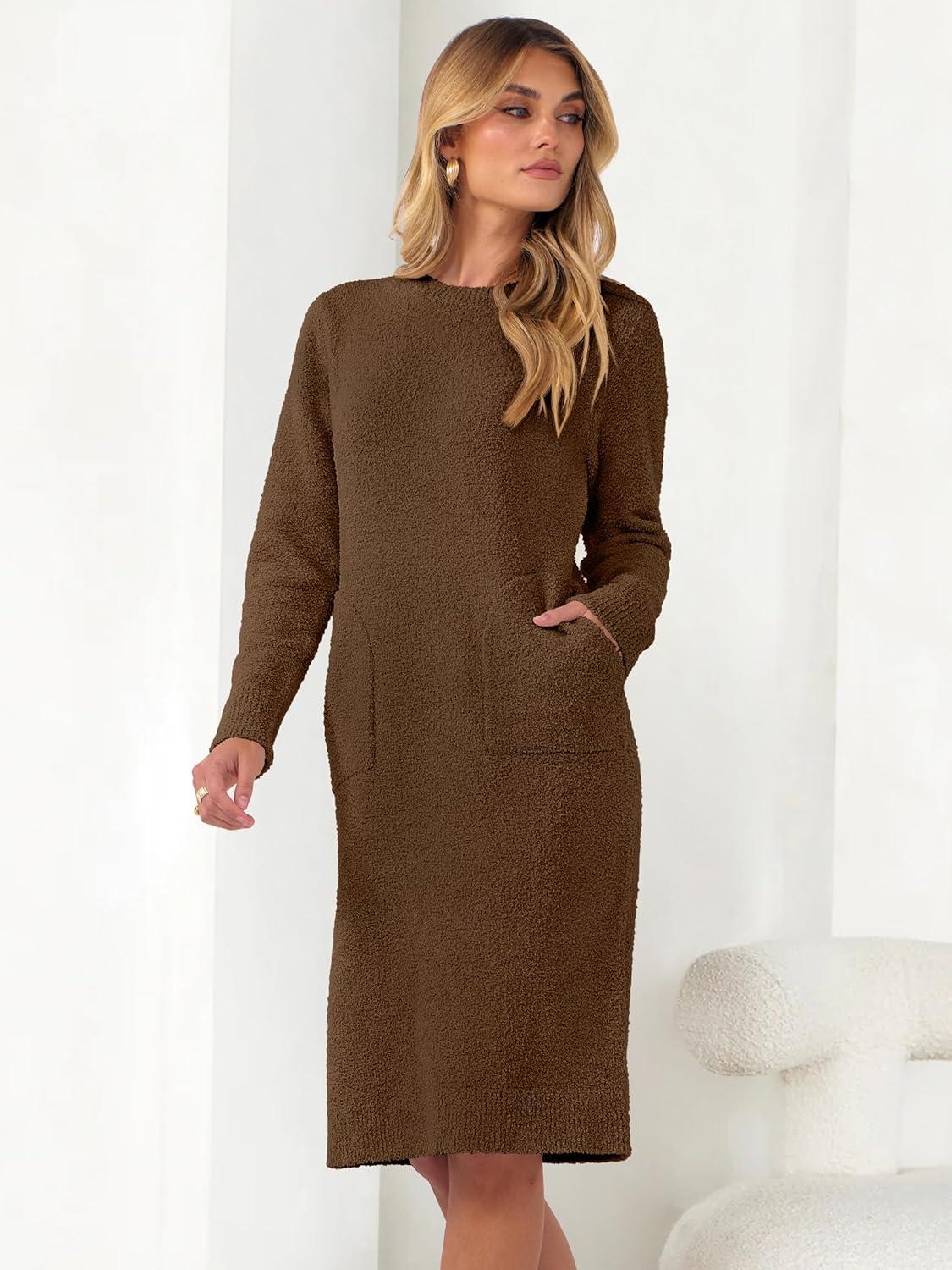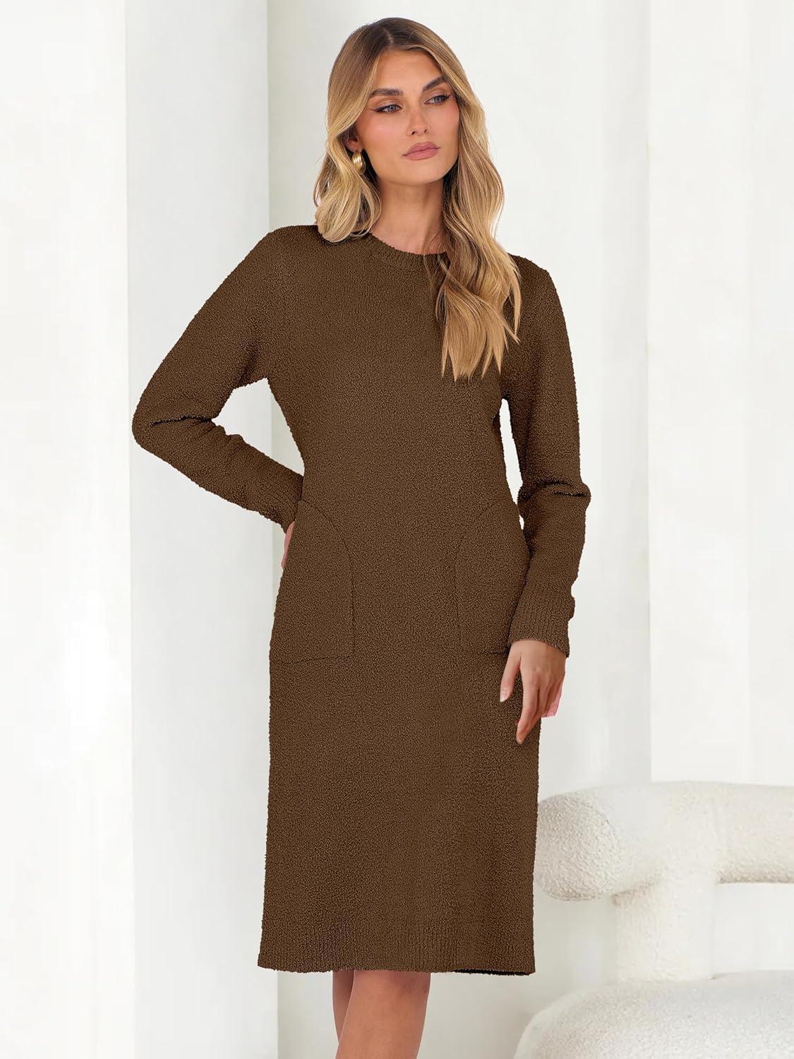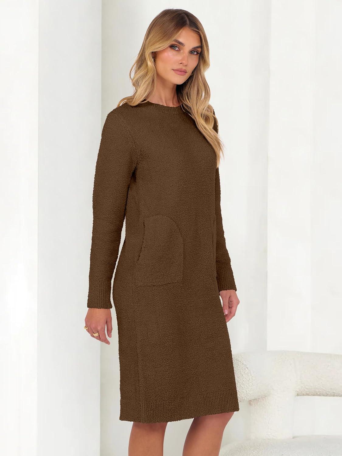 ANRABESS Womens Nightgown Sweater Dress Long Sleeve Fuzzy Knit Cozy Casual Loungewear 2025 Winter Midi Dress with Pockets(Brown)