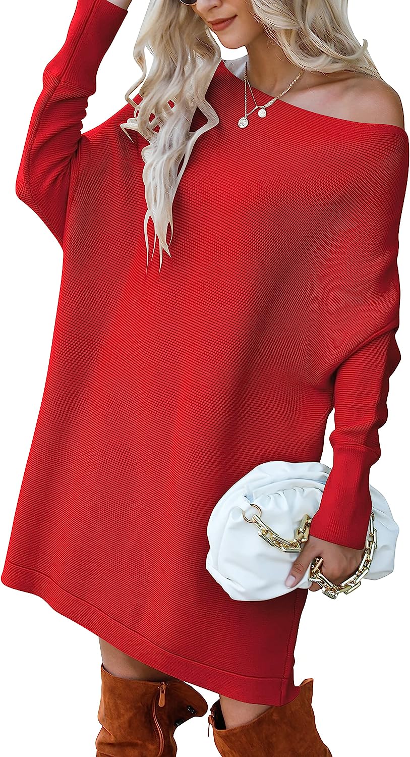 Features – wide boat neck for off shoulder looks, long sleeve batwing style,tunic length also could be a mini dress,oversized loose fit suit our body shape whatever slim ladies or curve ladies.Baggy slouchy pullover sweaters for fall and cold days.
