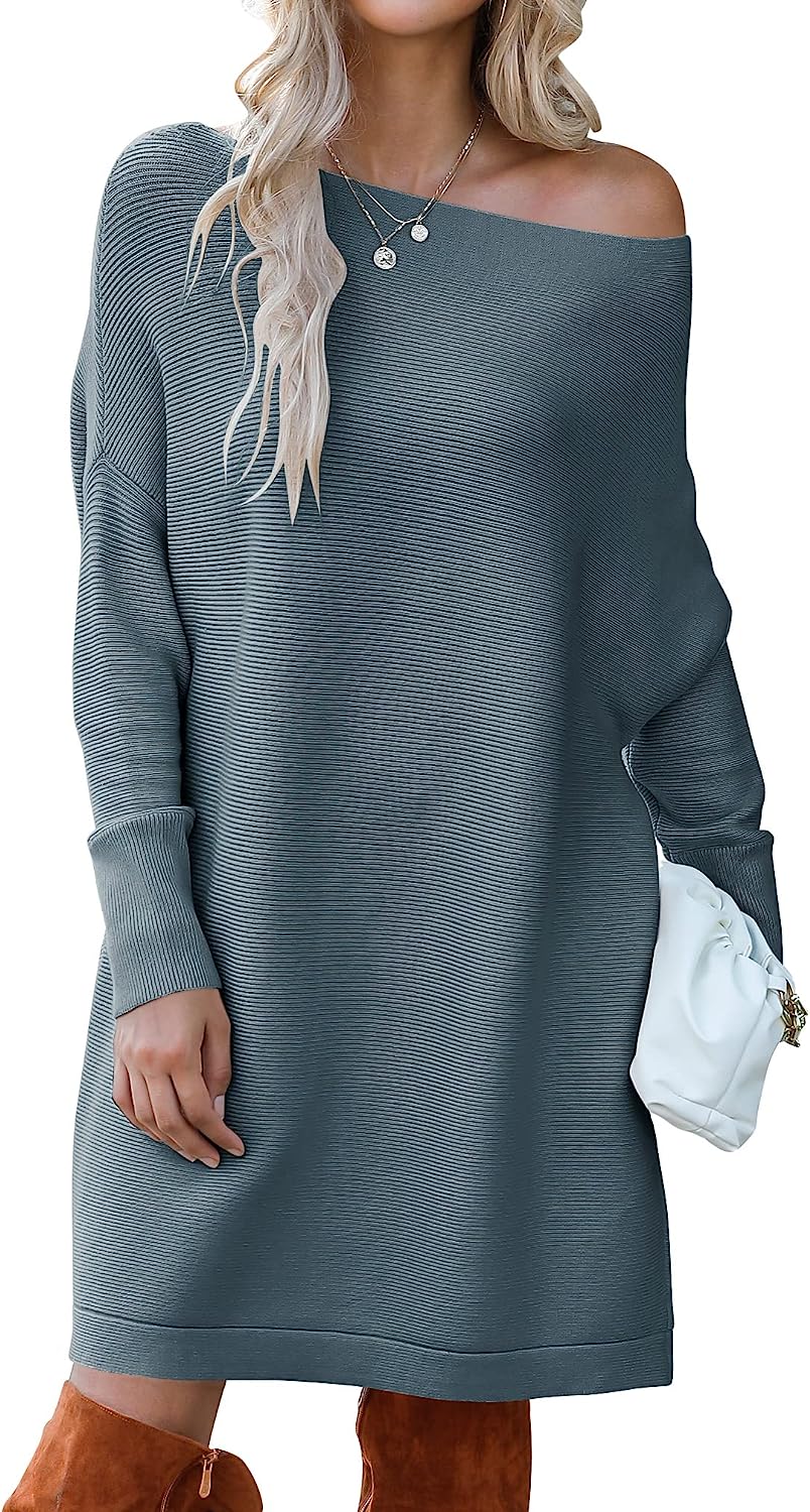 Features – wide boat neck for off shoulder looks, long sleeve batwing style,tunic length also could be a mini dress,oversized loose fit suit our body shape whatever slim ladies or curve ladies.Baggy slouchy pullover sweaters for fall and cold days.