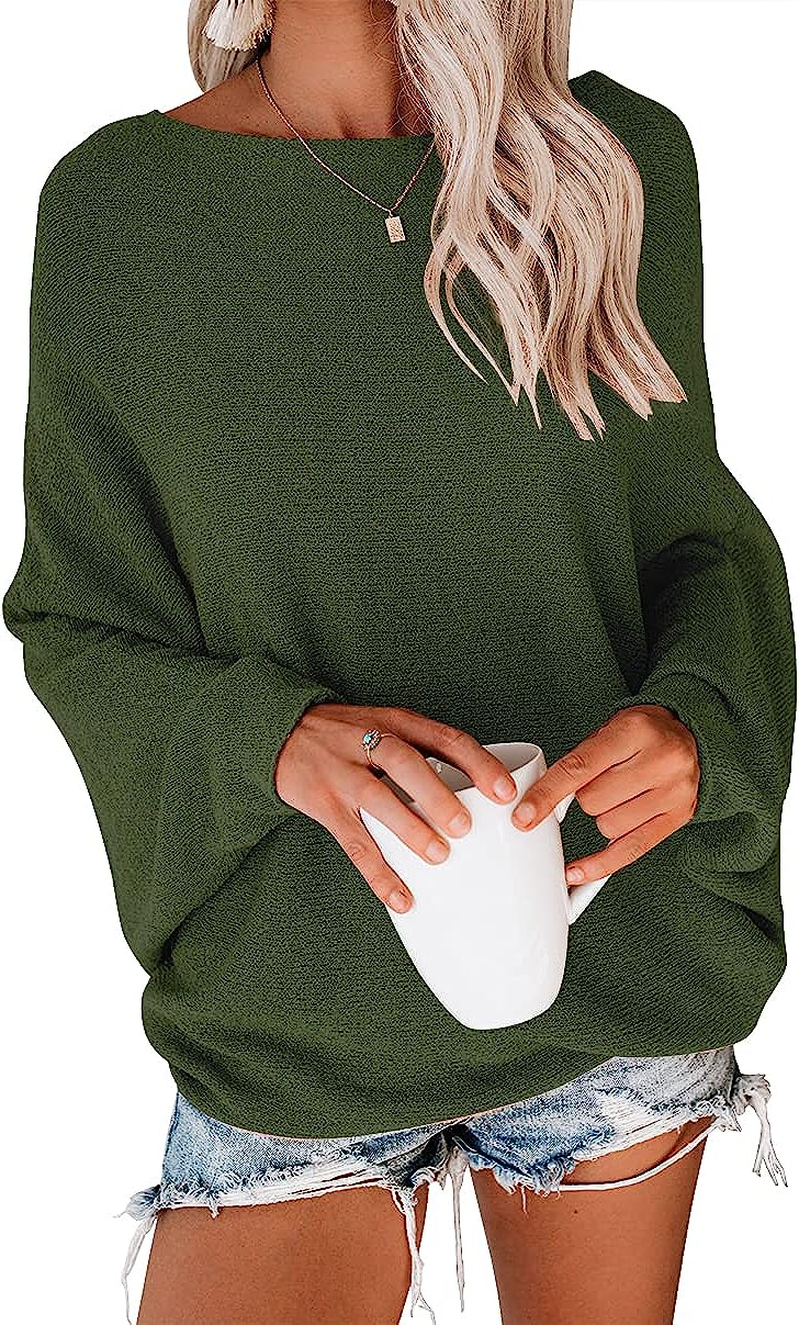 ANRABESS Women’s Off Shoulder Long Sleeve Oversized Pullover Sweater Knit Jumper Loose Tops(05-army Green)