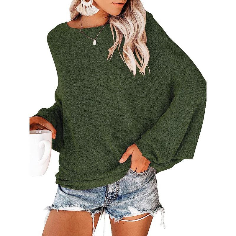 Design:Batwing Sleeve Sweater Tops, Crew Neck/ off-shoulder, Long Sleeve, Loose Fit, solid color.