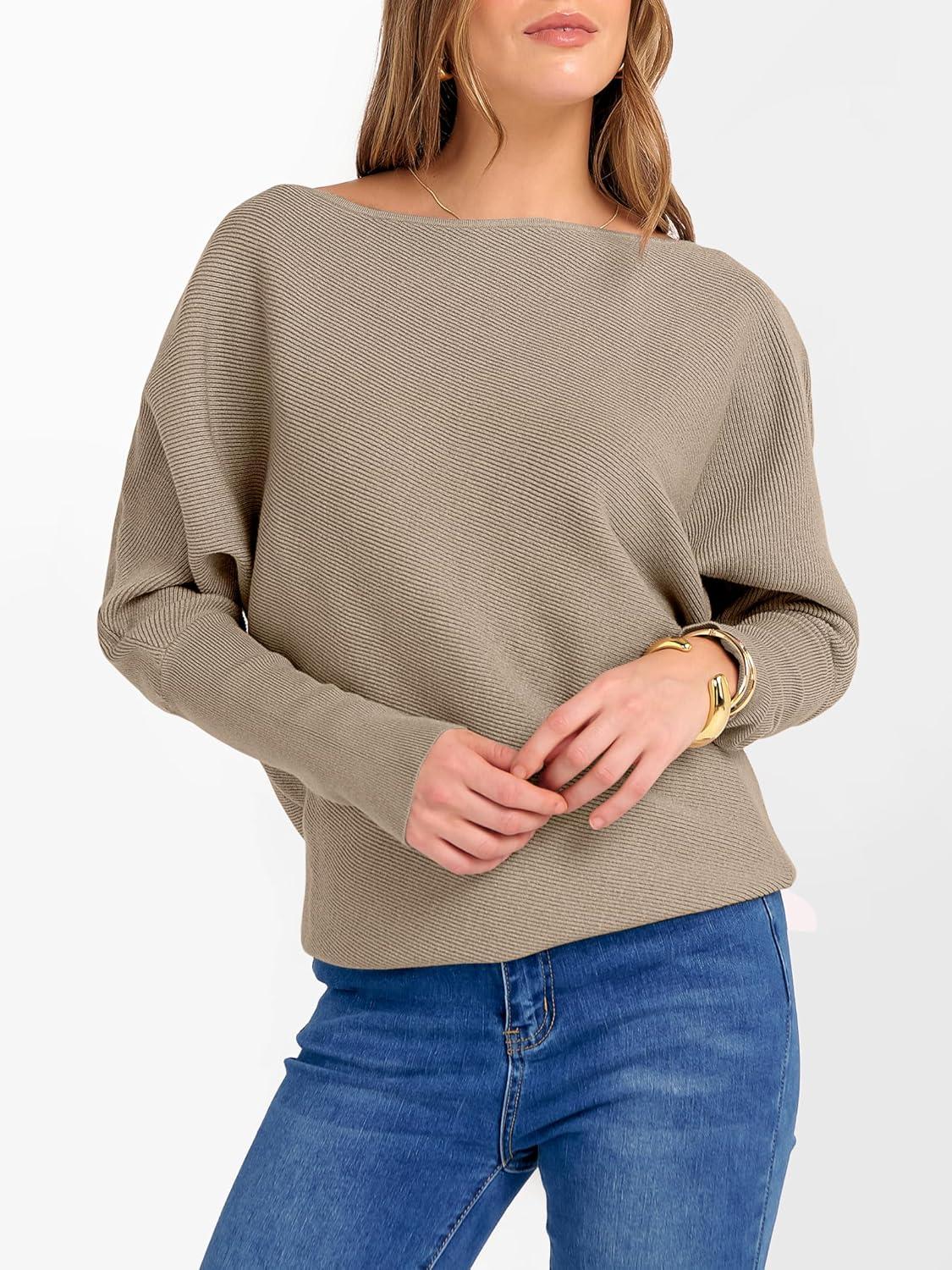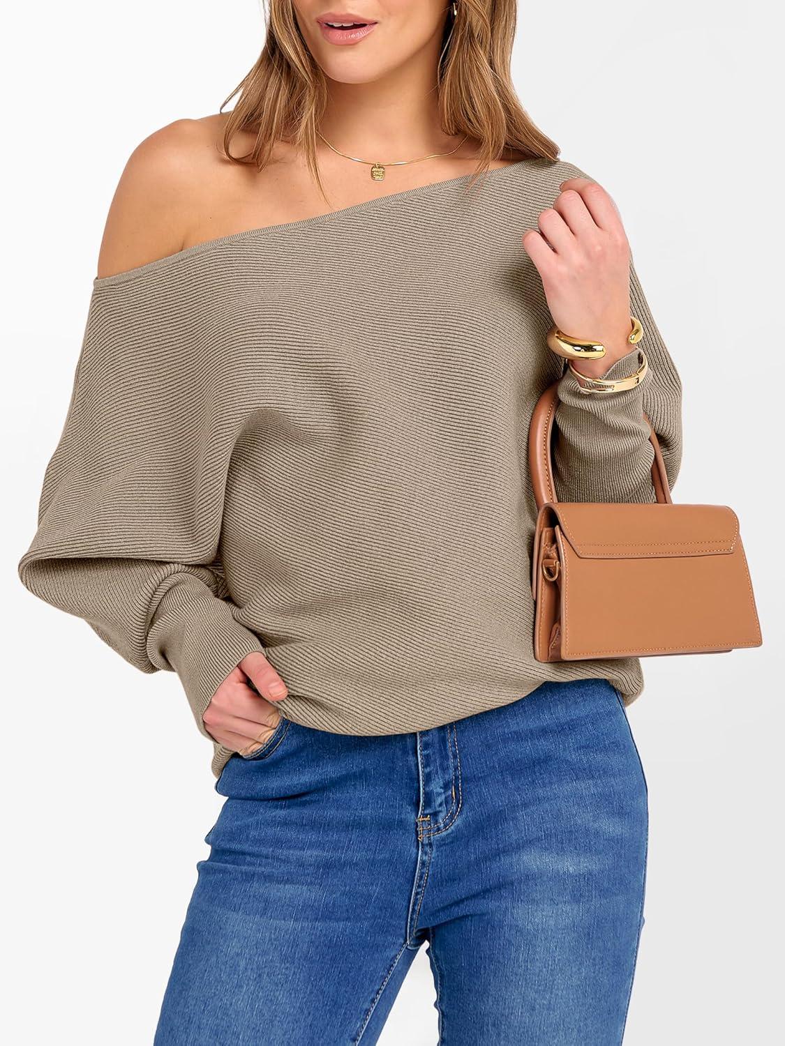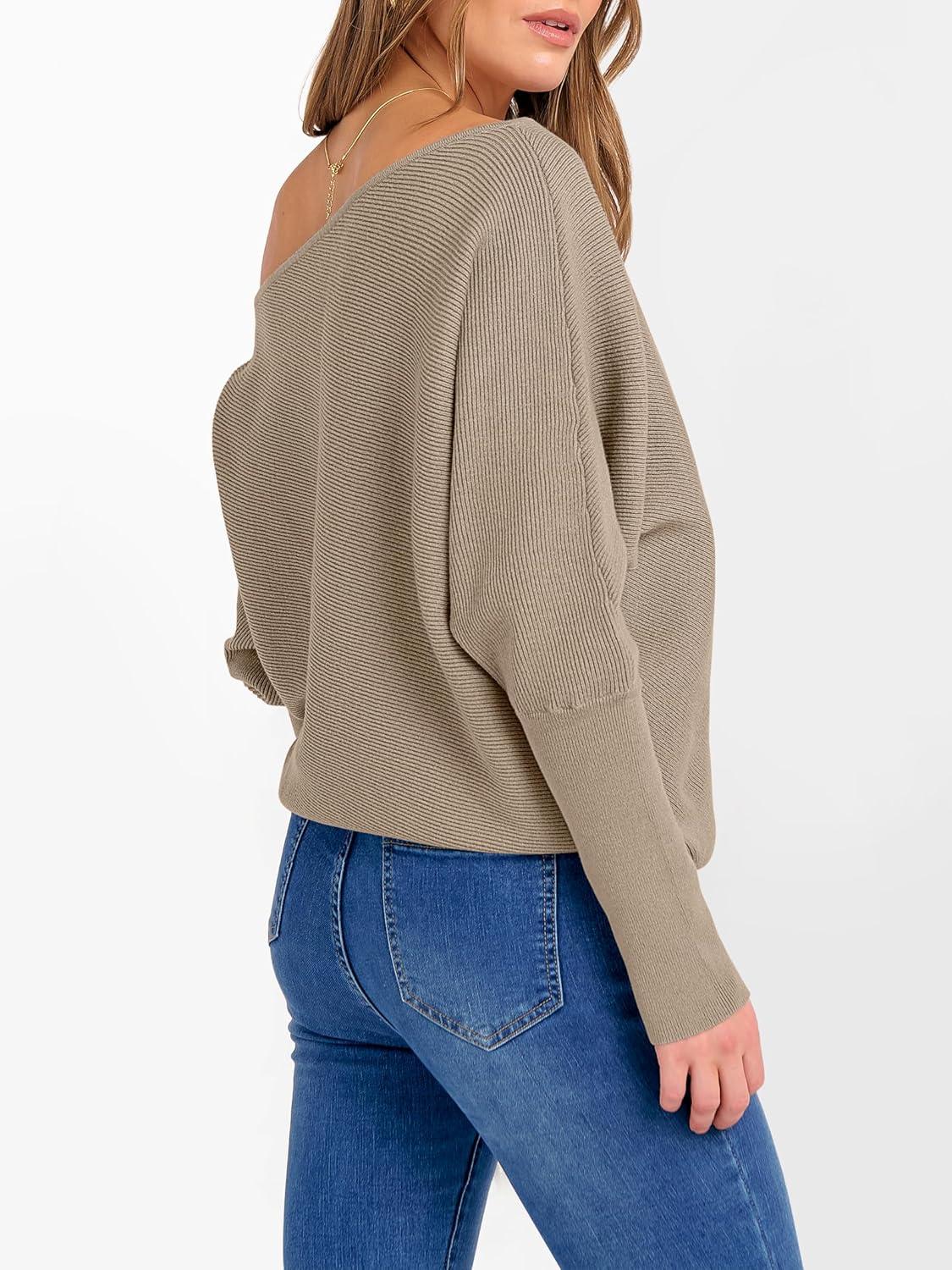 ANRABESS Womens Off Shoulder Sweaters 2025 Fall Long Batwing Sleeve Loose Fit Knit Tops Casual Pullovers Jumpers(Bright Tan)