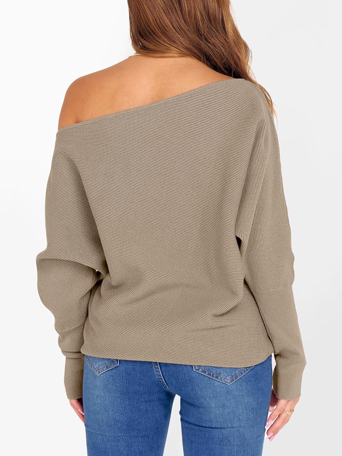 imageANRABESS Womens Off Shoulder Sweaters 2025 Fall Long Batwing Sleeve Loose Fit Knit Tops Casual Pullovers JumpersDeep Caramel