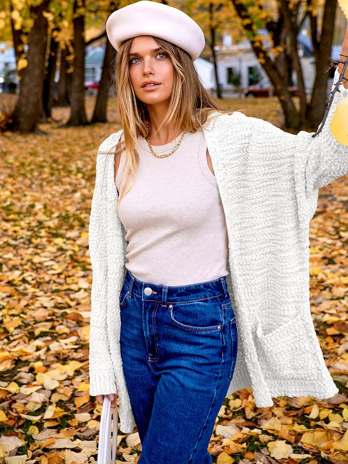 ANRABESS Womens Open Front Fuzzy Cardigan Sweaters Batwing Sleeve Lightweight Oversized Loose Knit Sweater with Pockets(White)