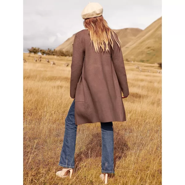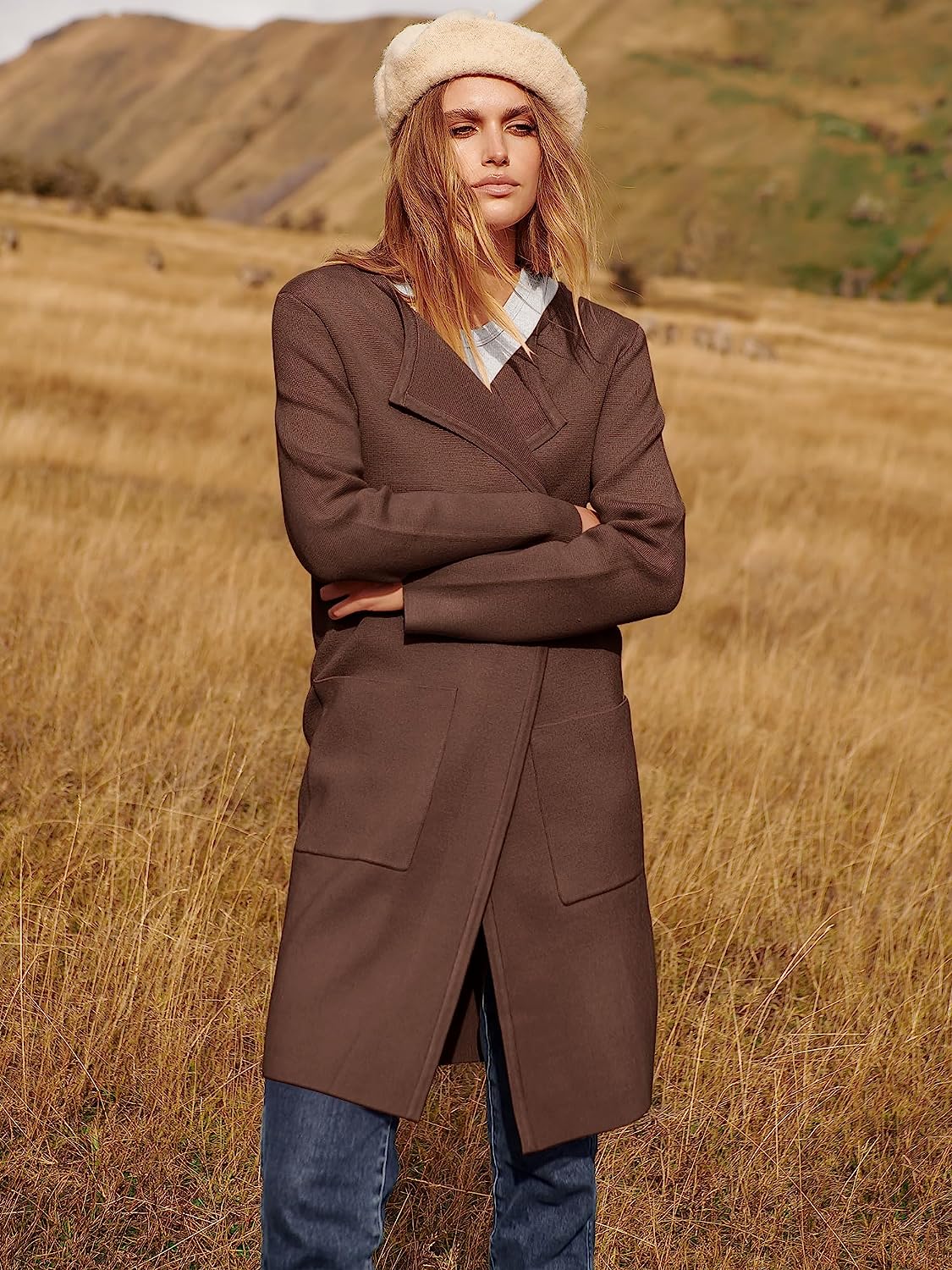 ANRABESS Women's Open Front Knit Cardigan Long Sleeve Lapel Casual Solid Classy Sweater Jacket(Brown)