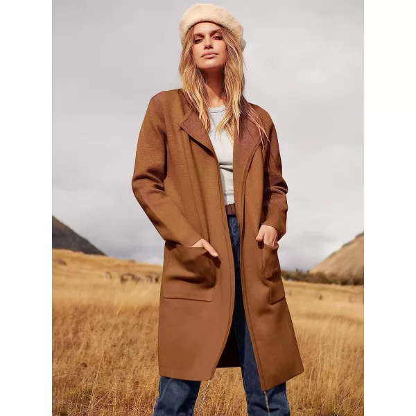 ANRABESS Women's Open Front Knit Cardigan Long Sleeve Lapel Casual Solid Classy Sweater Jacket(Caramel)