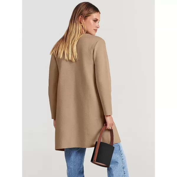 ANRABESS Women's Open Front Knit Cardigan Long Sleeve Lapel Casual Solid Classy Sweater Jacket(Khaki)
