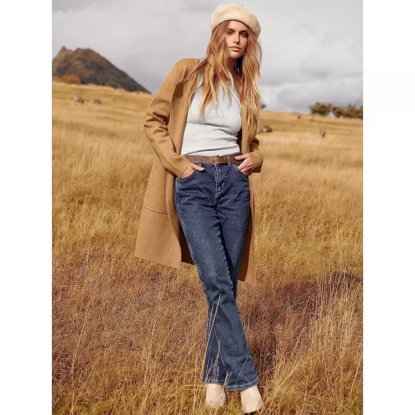 ANRABESS Women's Open Front Knit Cardigan Long Sleeve Lapel Casual Solid Classy Sweater Jacket(Light Brown)