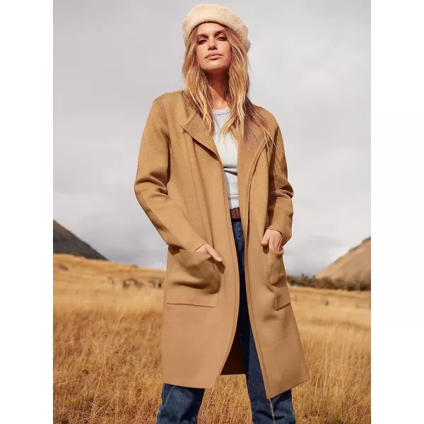 imageANRABESS Womens Open Front Knit Cardigan Long Sleeve Lapel Casual Solid Classy Sweater JacketLight Brown