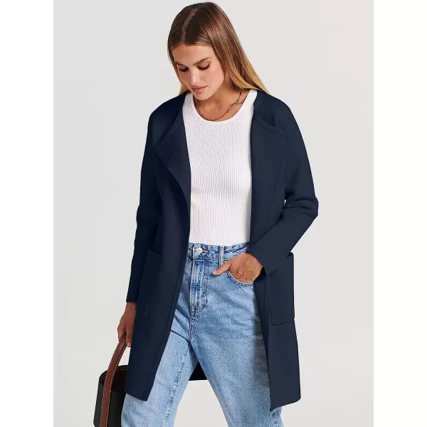 ANRABESS Women's Open Front Knit Cardigan Long Sleeve Lapel Casual Solid Classy Sweater Jacket(Navy Blue)