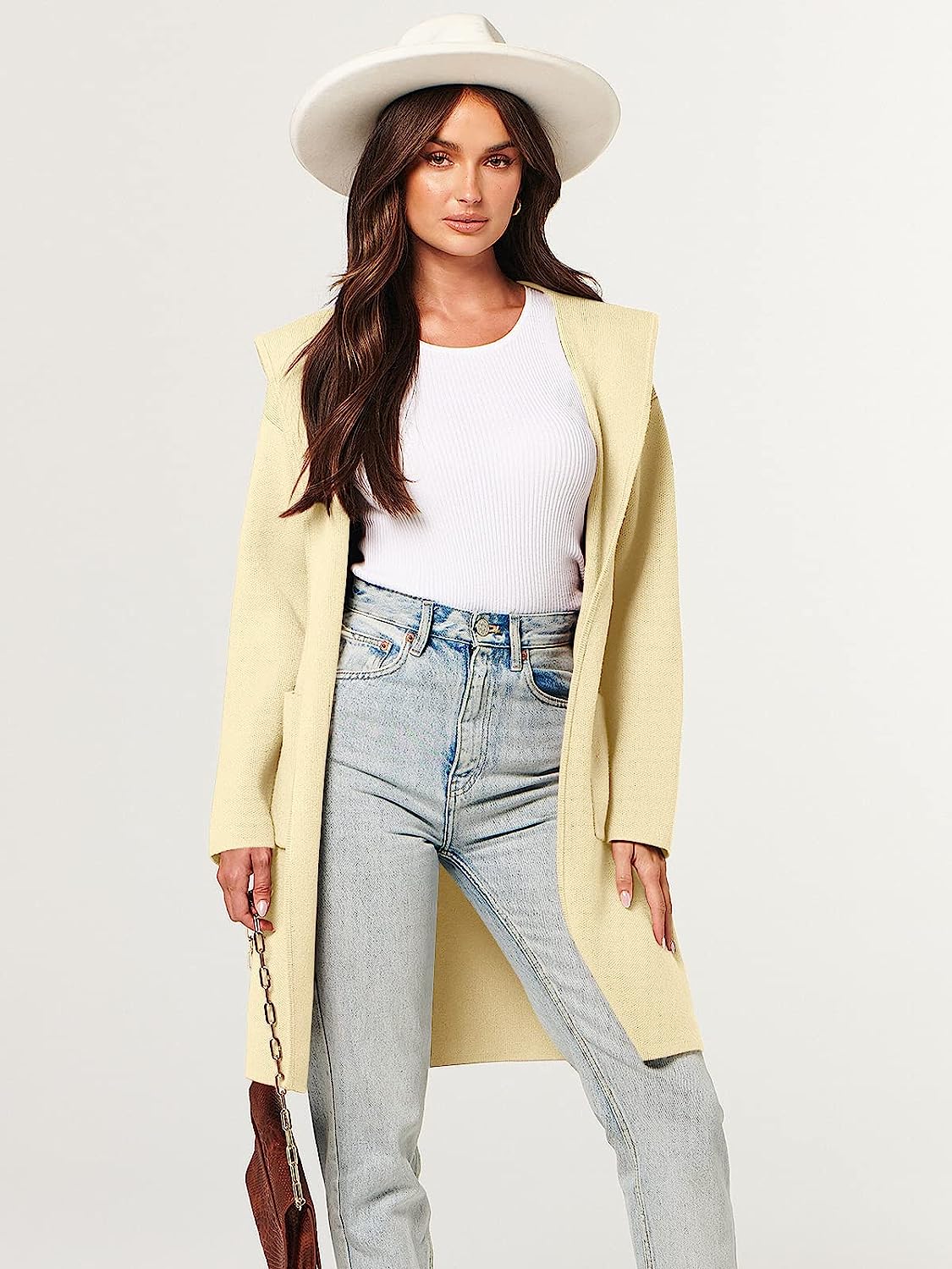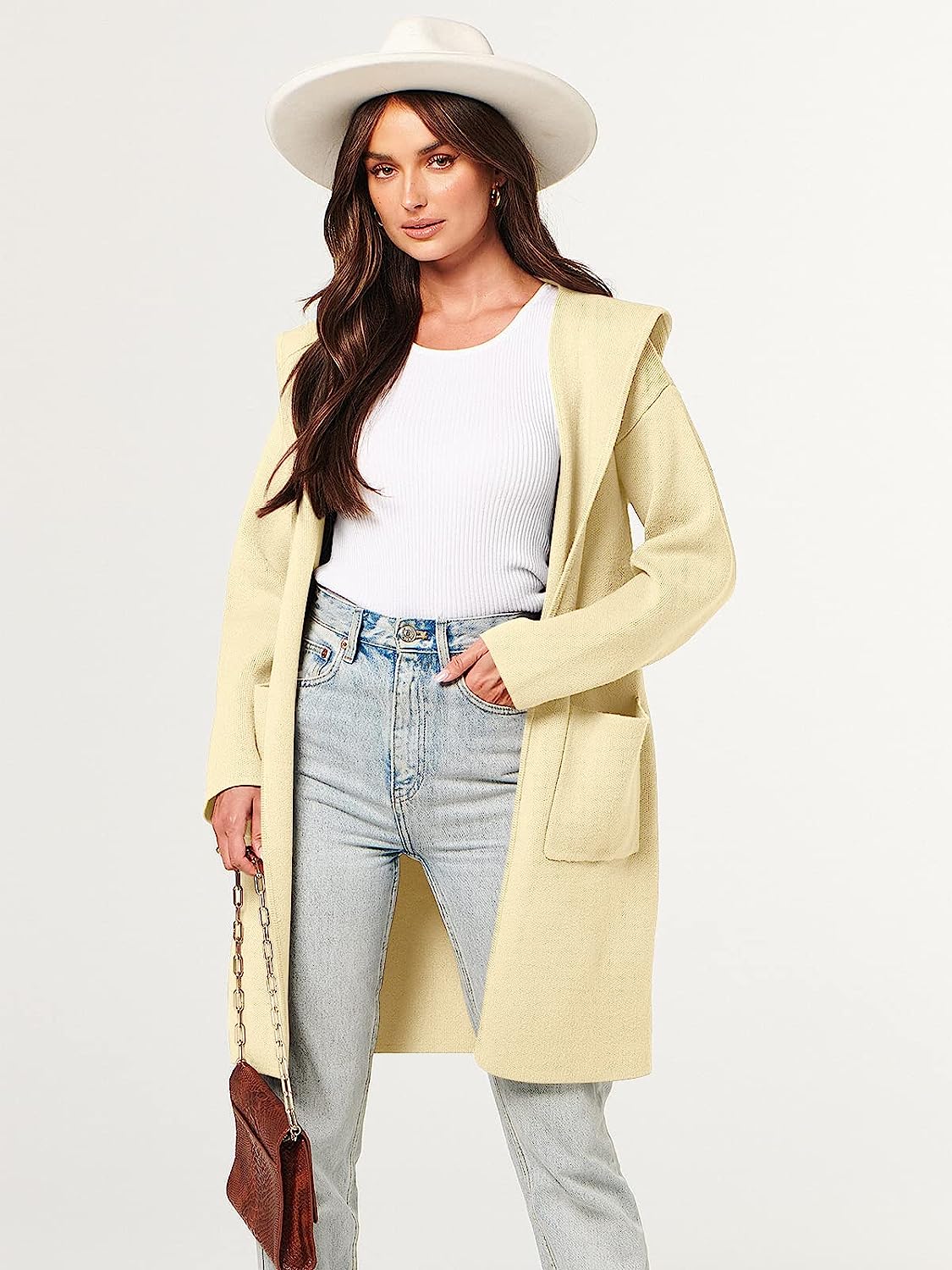ANRABESS Women’s Open Front Long Sleeve Oversized Hoodie Cardigan Coat Casual Pockets Knit Cotigan Sweater(White)