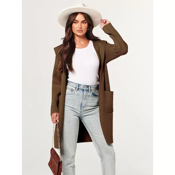 ANRABESS Women's Open Front Long Sleeve Oversized Hoodie Cardigan Coat Casual Pockets Knit Cotigan Sweater(Brown)