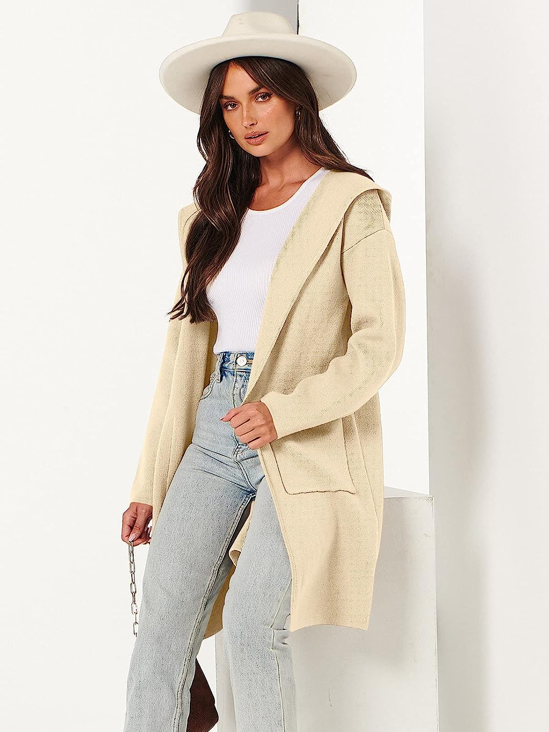 ANRABESS Women's Open Front Long Sleeve Oversized Hoodie Cardigan Coat Casual Pockets Knit Cotigan Sweater(Khaki Beige)