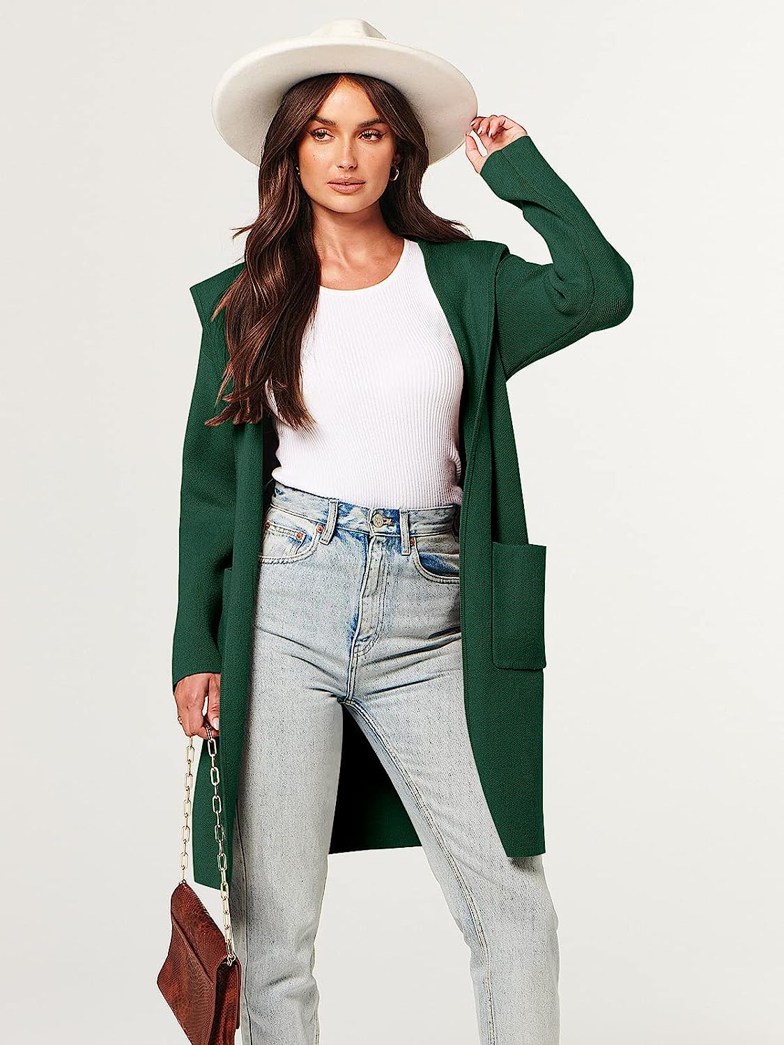 ANRABESS Women's Open Front Long Sleeve Oversized Hoodie Cardigan Coat Casual Pockets Knit Cotigan Sweater(Opal Green)