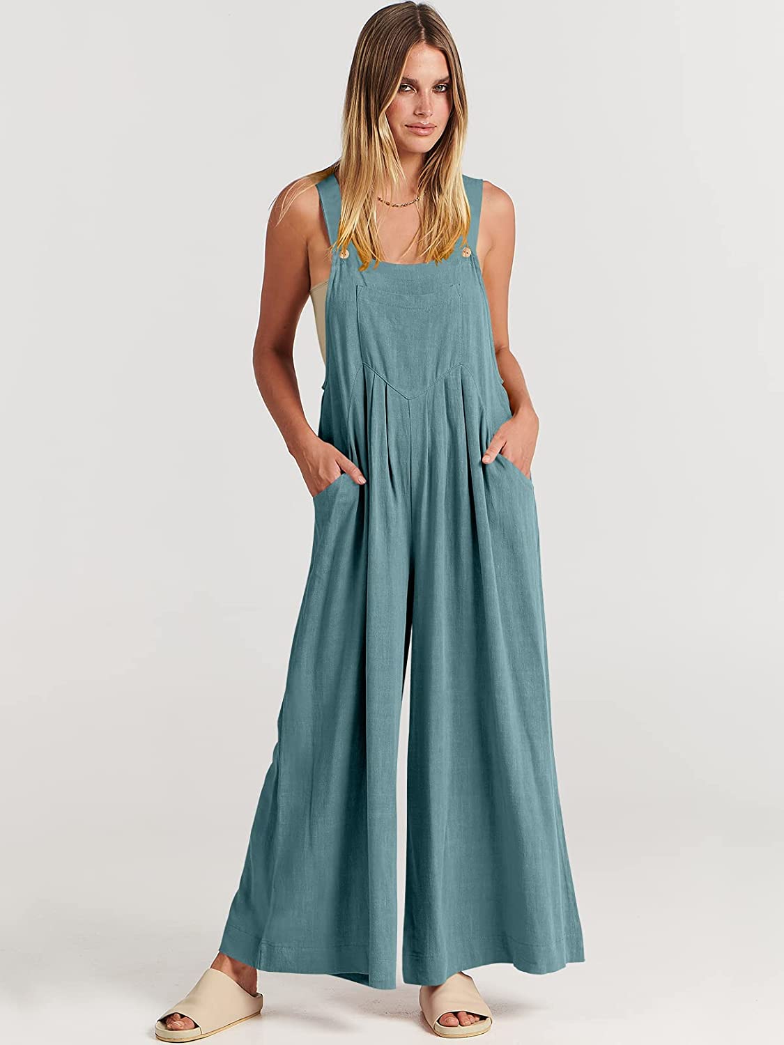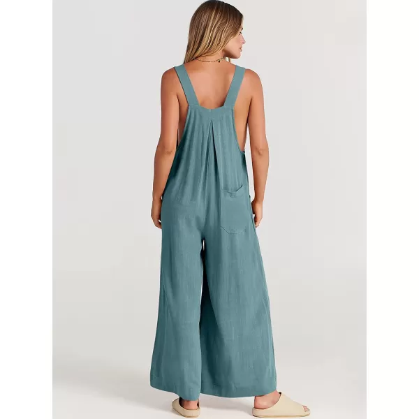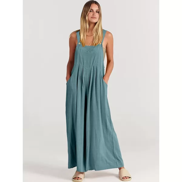 ANRABESS Women's Overalls Jumpsuit Casual Loose Sleeveless Adjustable Straps Bib Wide Leg Outfits with Pockets(Lake)